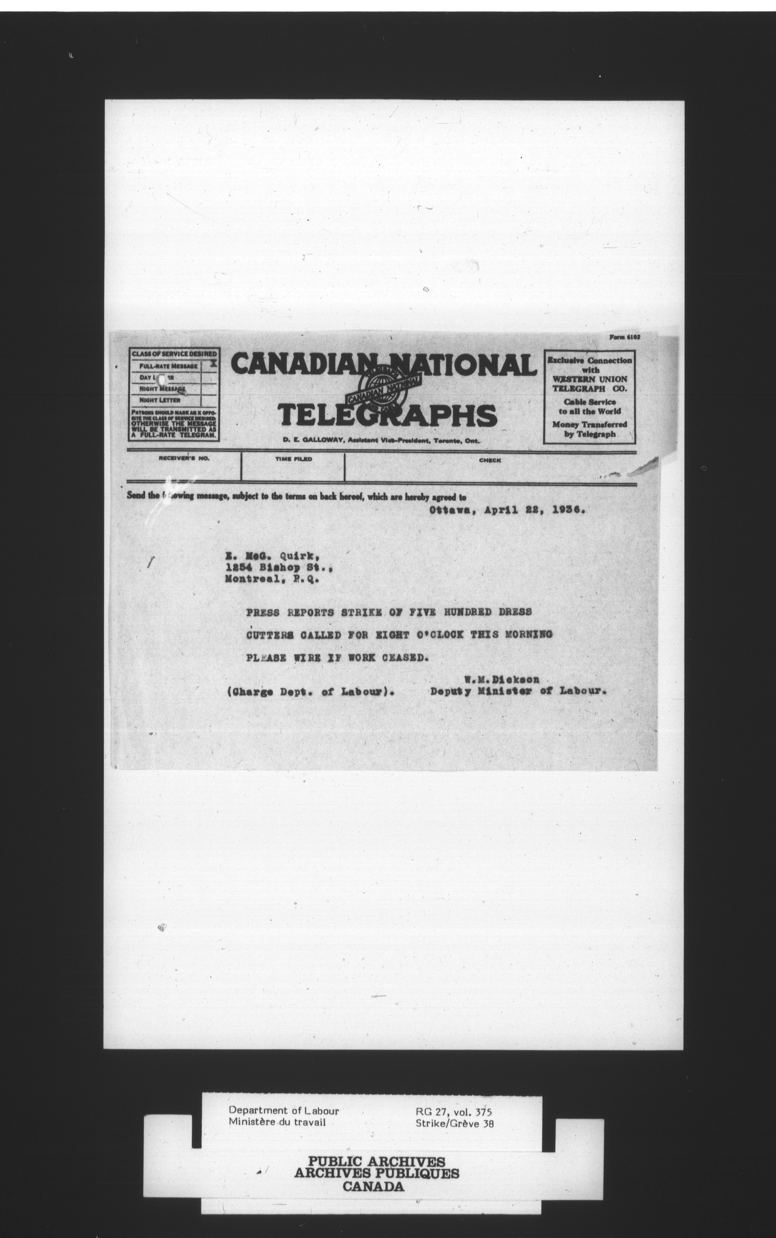 Department of Labour, Economics and Research Branch : Strikes and lockout files - 2985