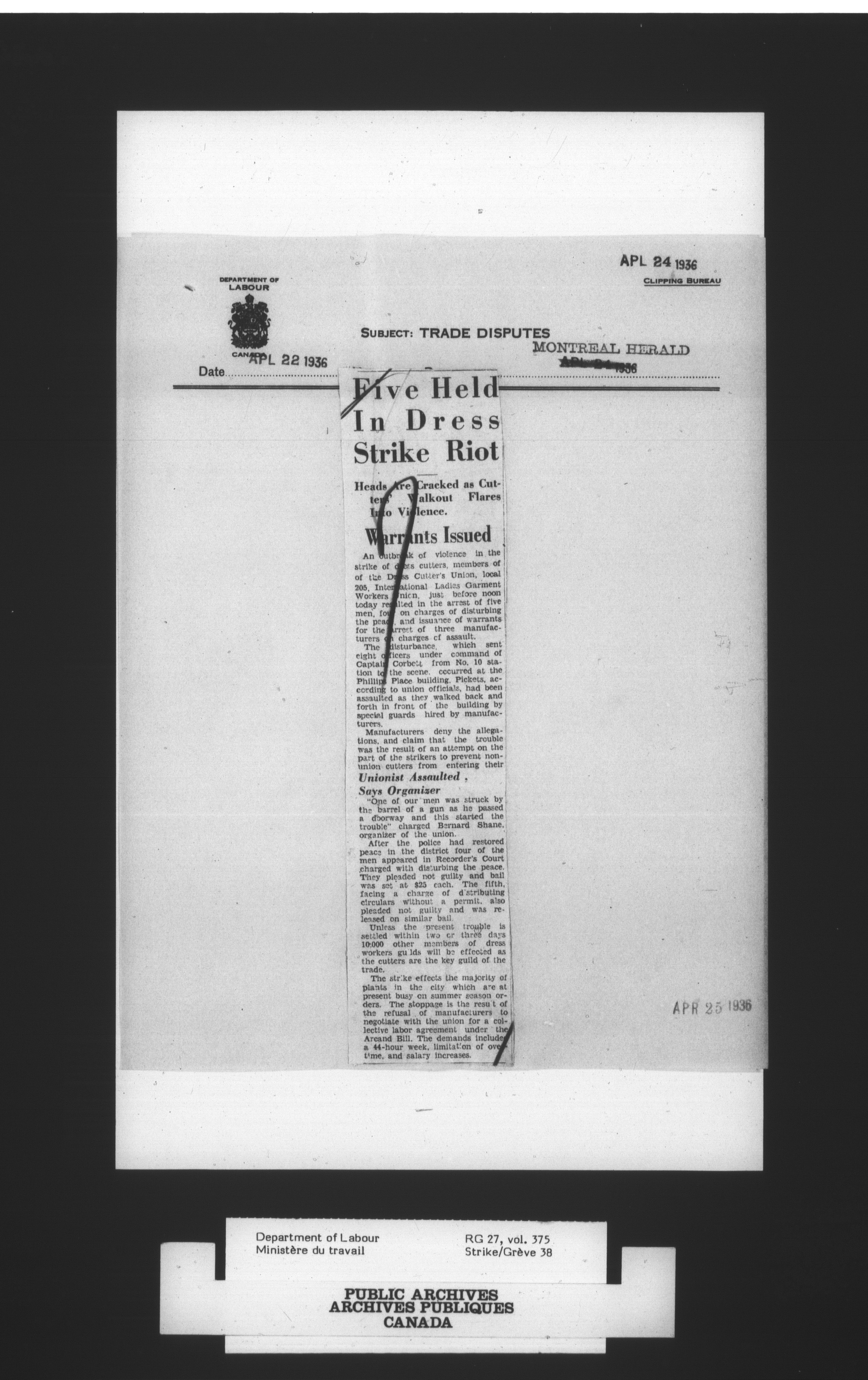 Department of Labour, Economics and Research Branch : Strikes and lockout files - 2985