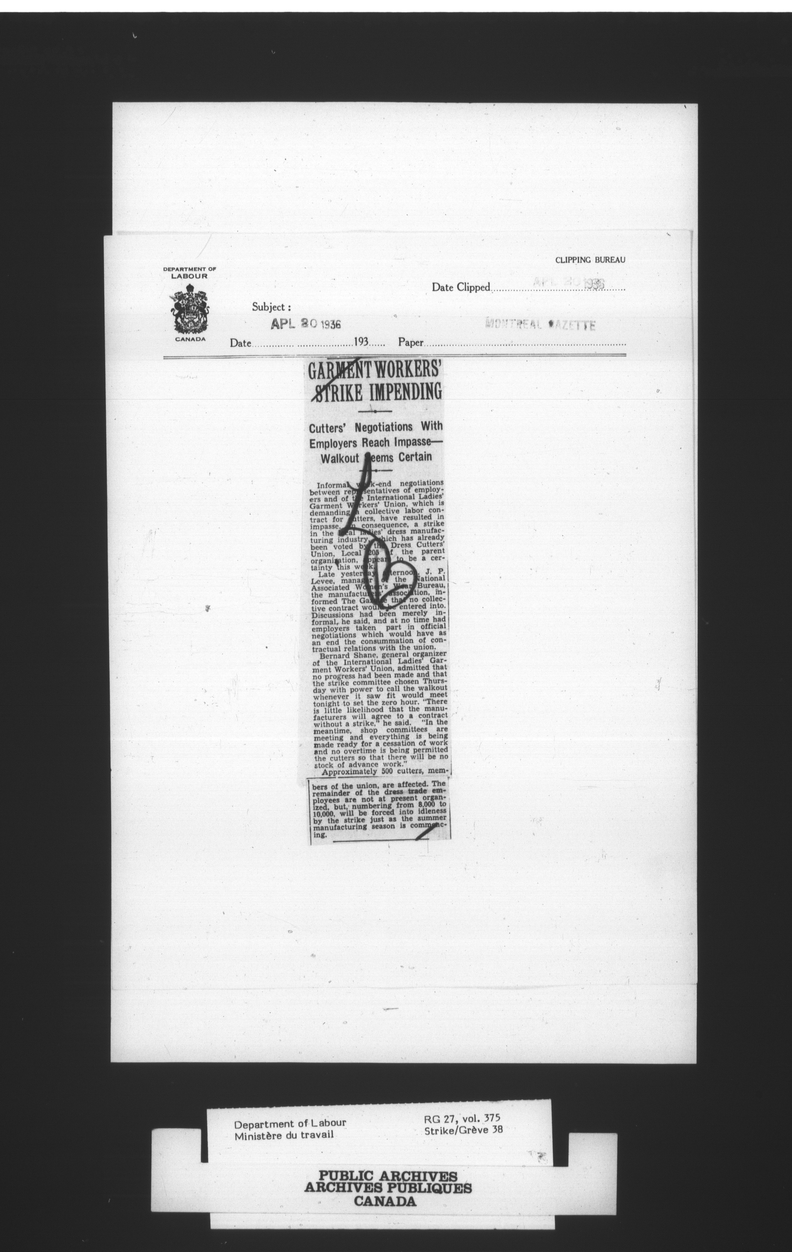 Department of Labour, Economics and Research Branch : Strikes and lockout files - 2985