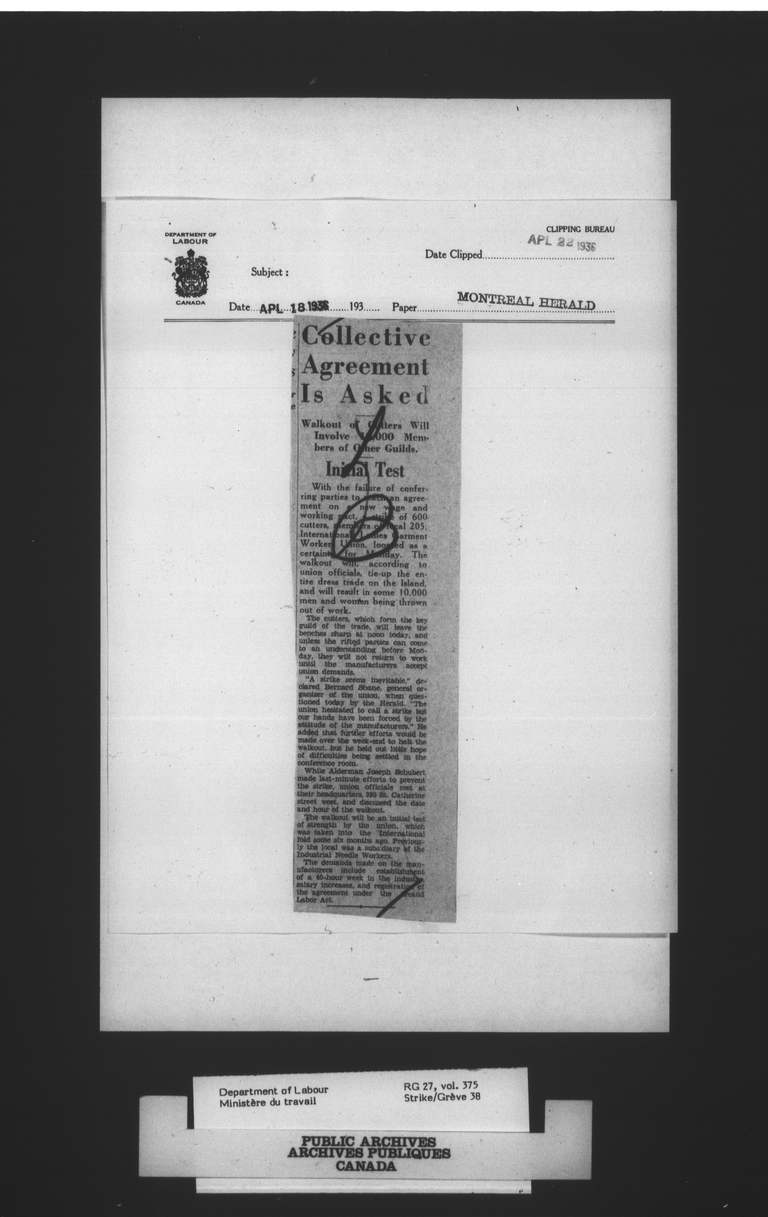Department of Labour, Economics and Research Branch : Strikes and lockout files - 2985