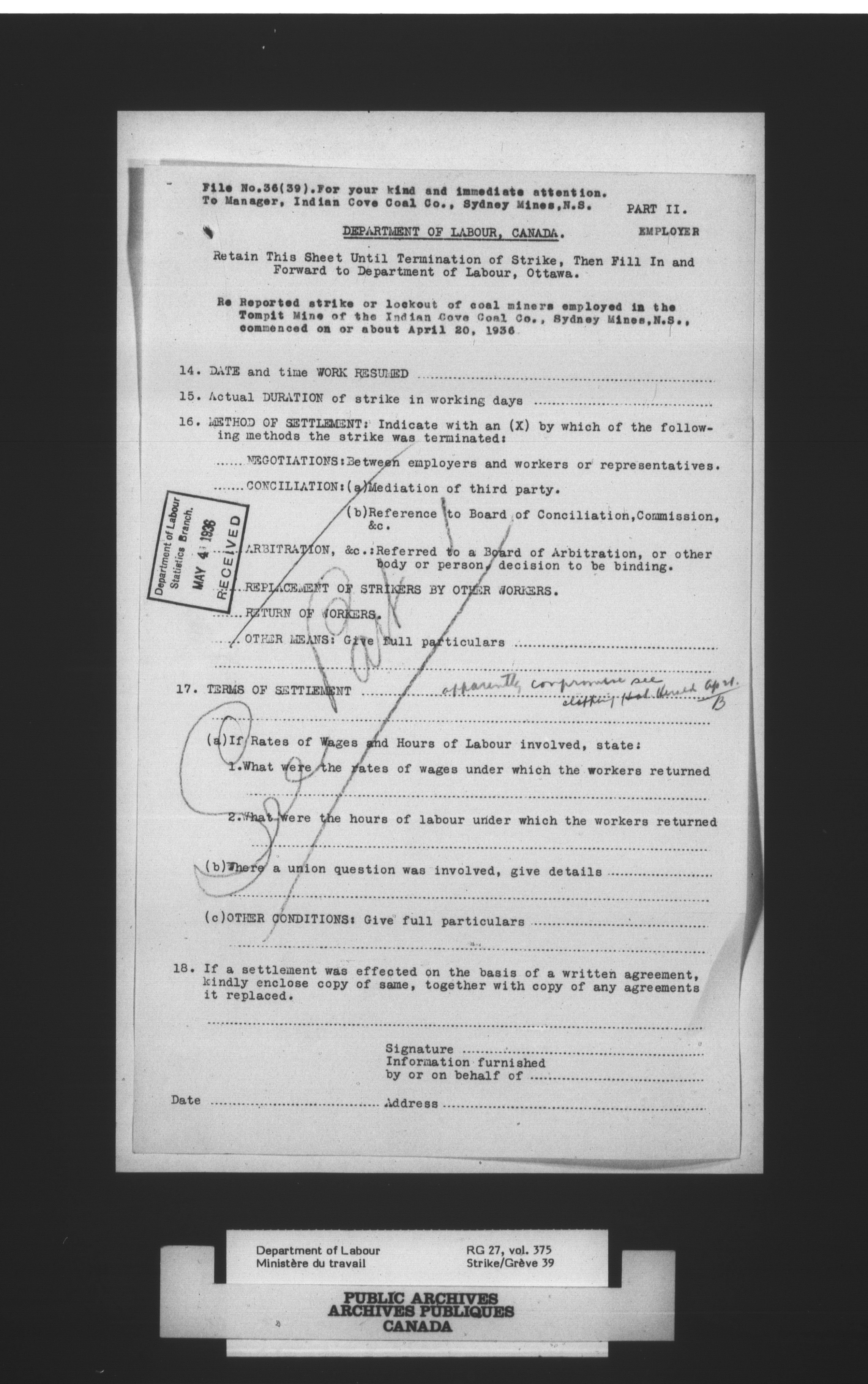 Department of Labour, Economics and Research Branch : Strikes and lockout files - 2985