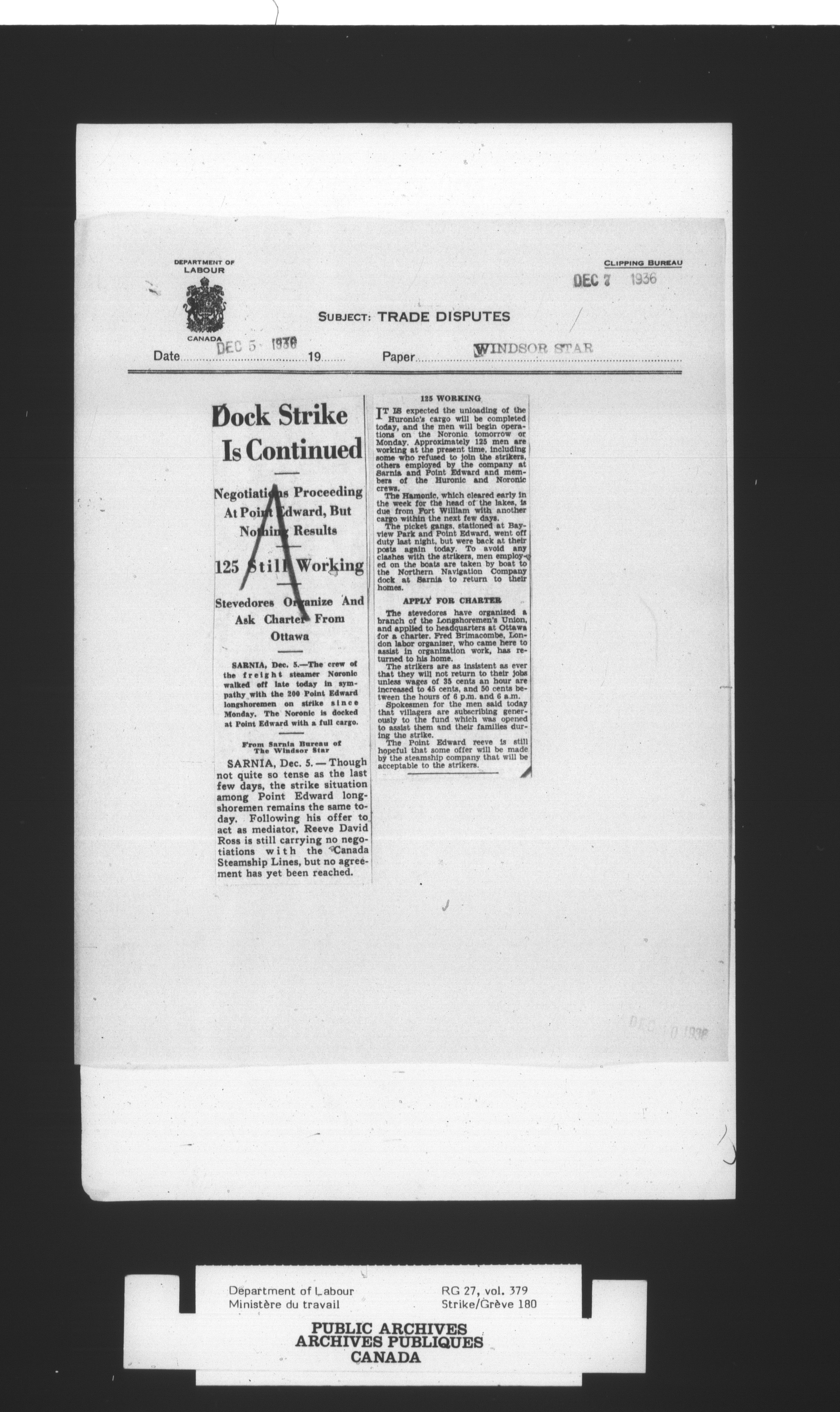 Department of Labour, Economics and Research Branch : Strikes and lockout files - 2988