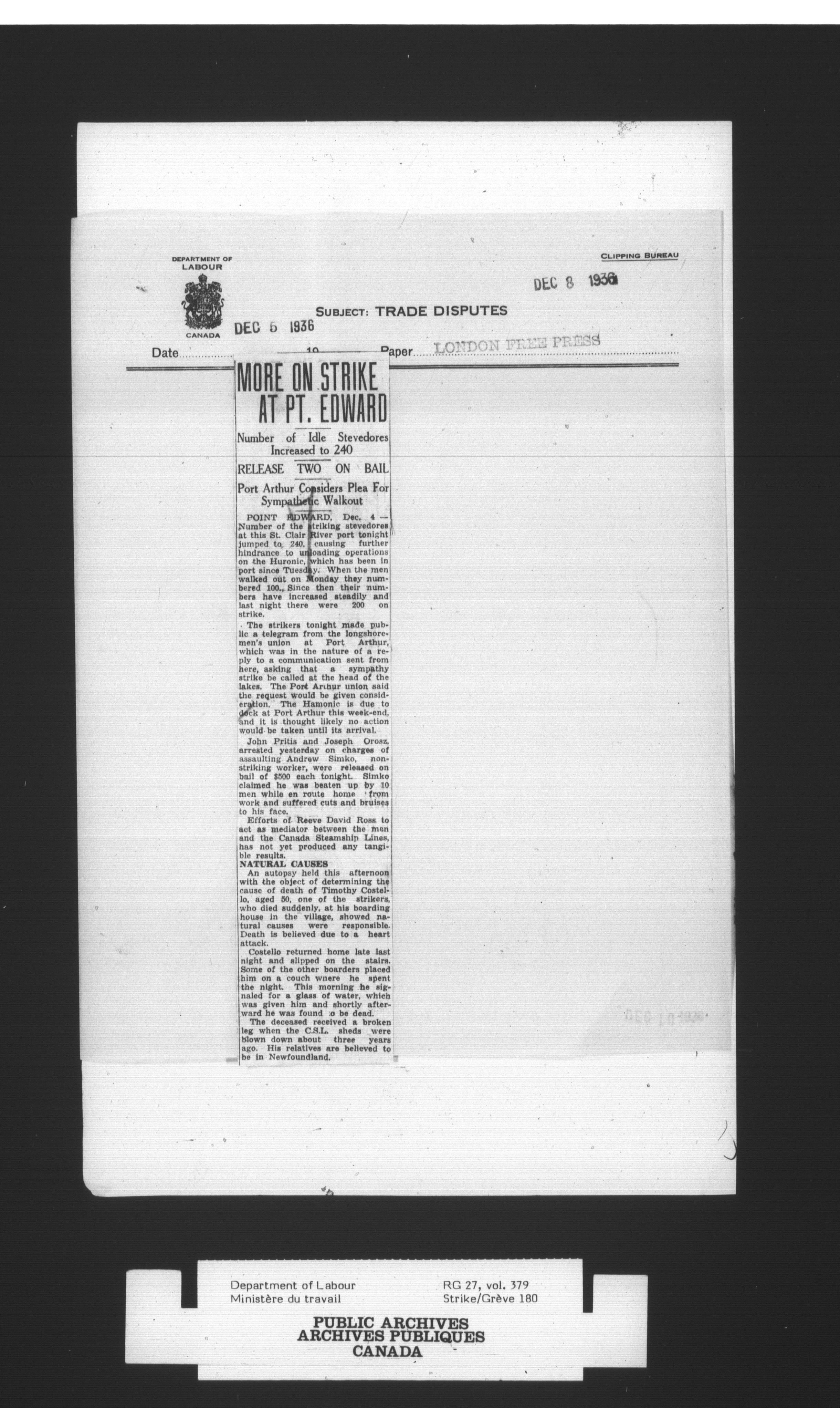Department of Labour, Economics and Research Branch : Strikes and lockout files - 2988