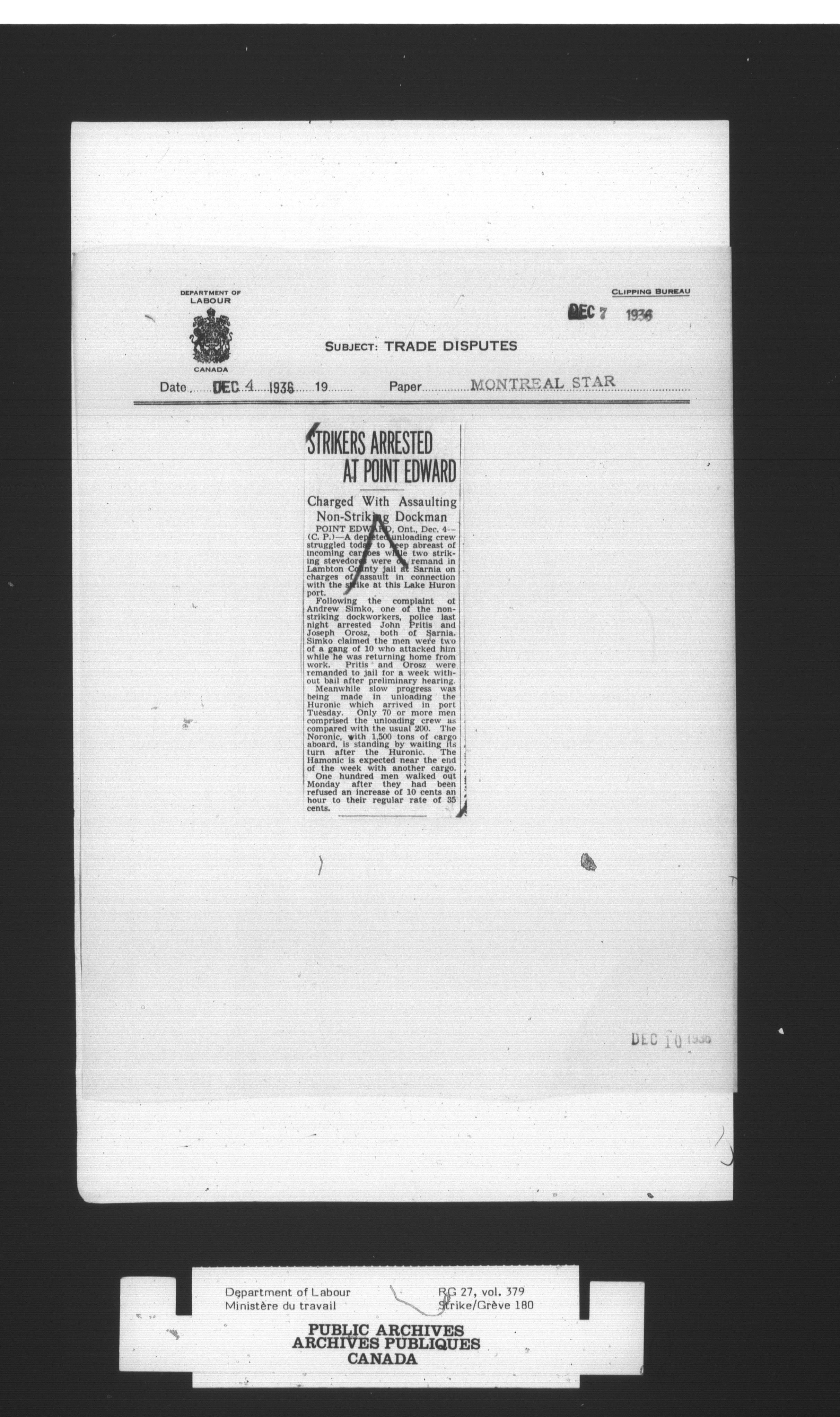 Department of Labour, Economics and Research Branch : Strikes and lockout files - 2988