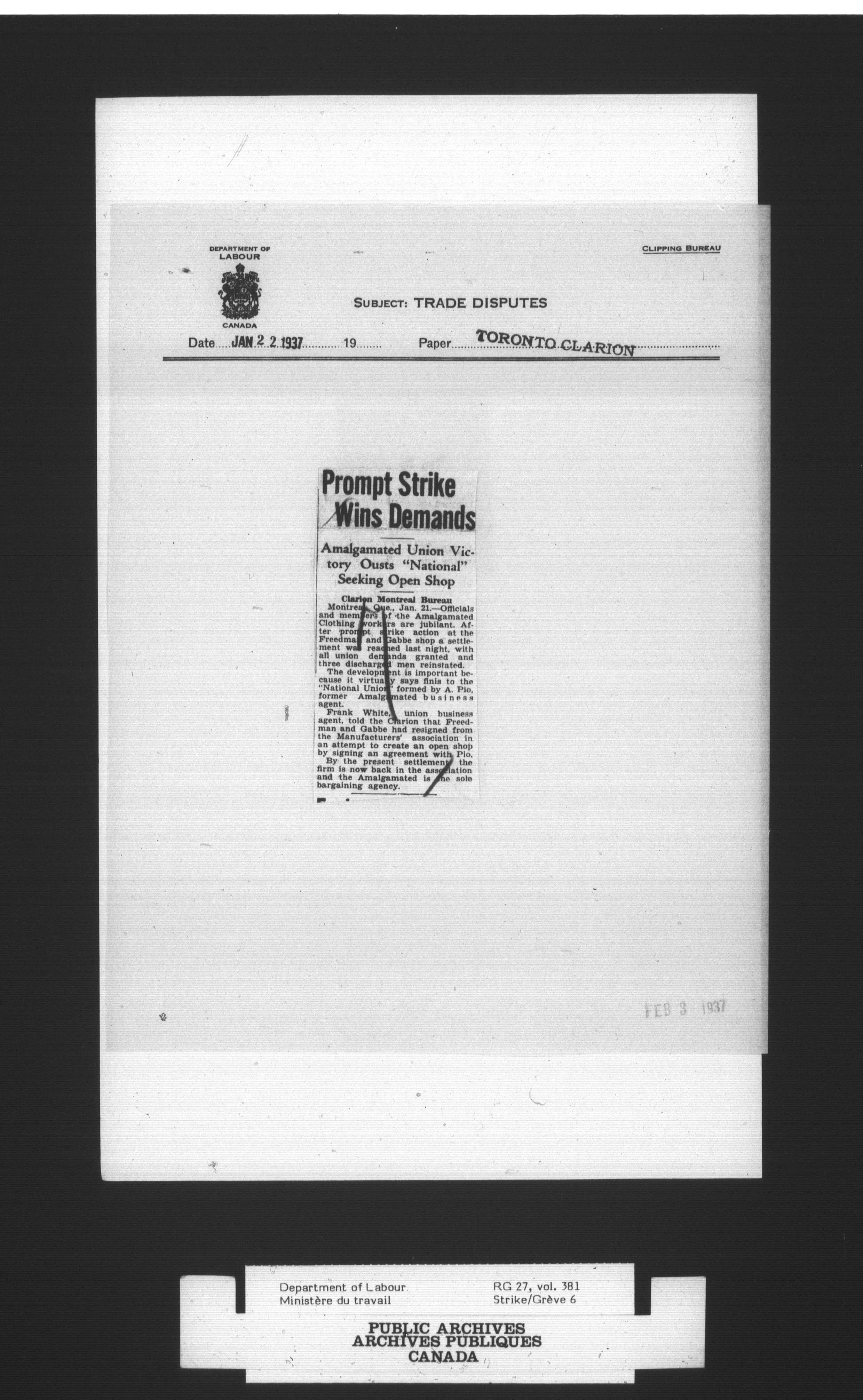 Department of Labour, Economics and Research Branch : Strikes and lockout files - 2989