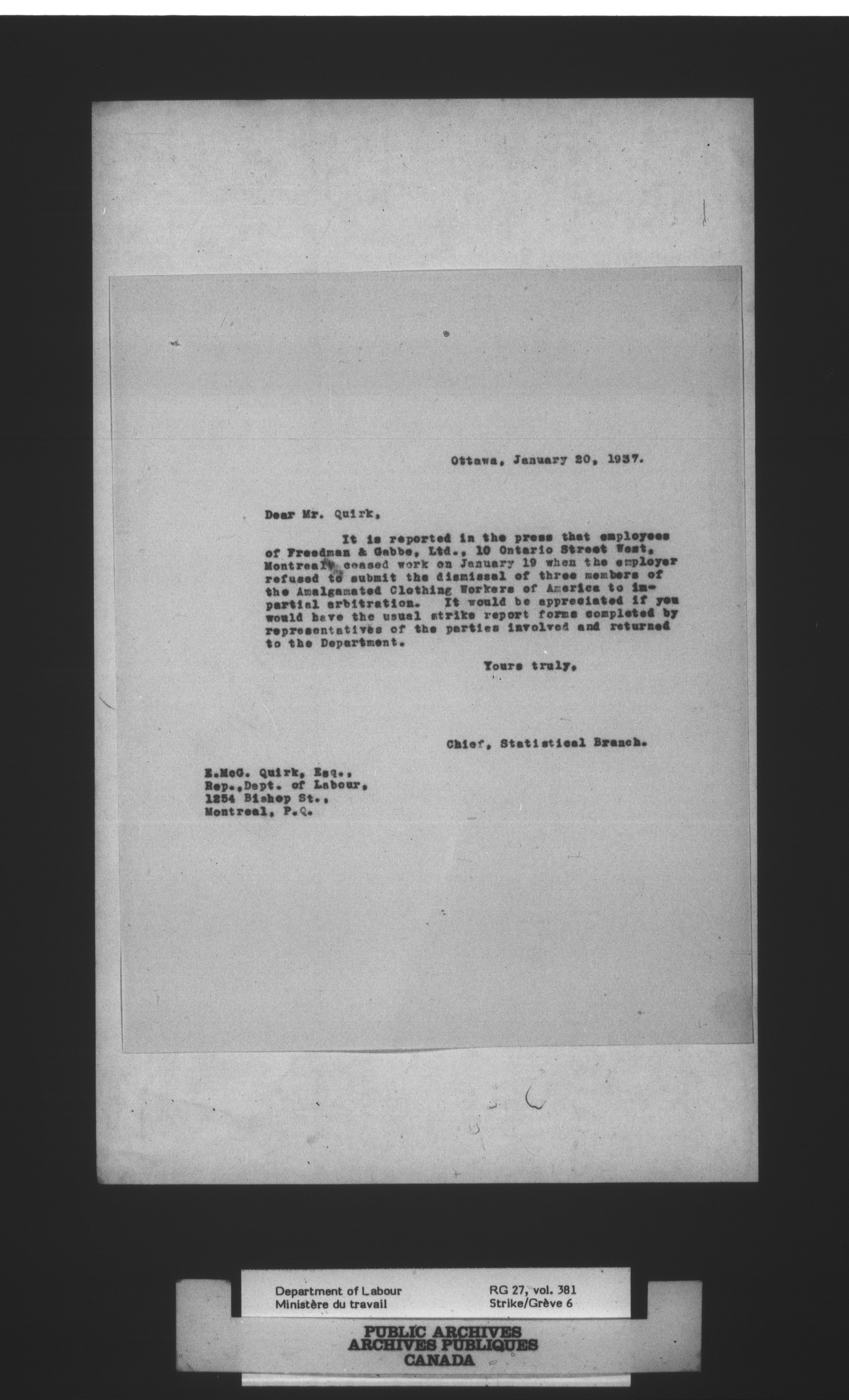 Department of Labour, Economics and Research Branch : Strikes and lockout files - 2989