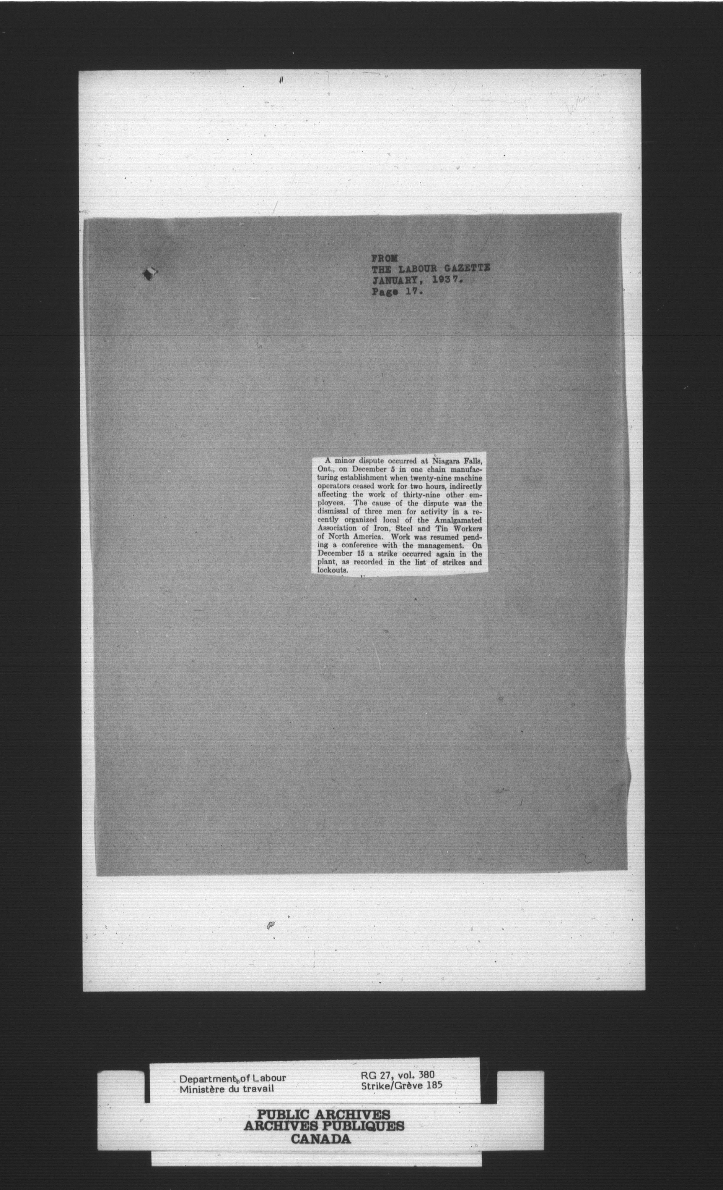 Department of Labour, Economics and Research Branch : Strikes and lockout files - 2989