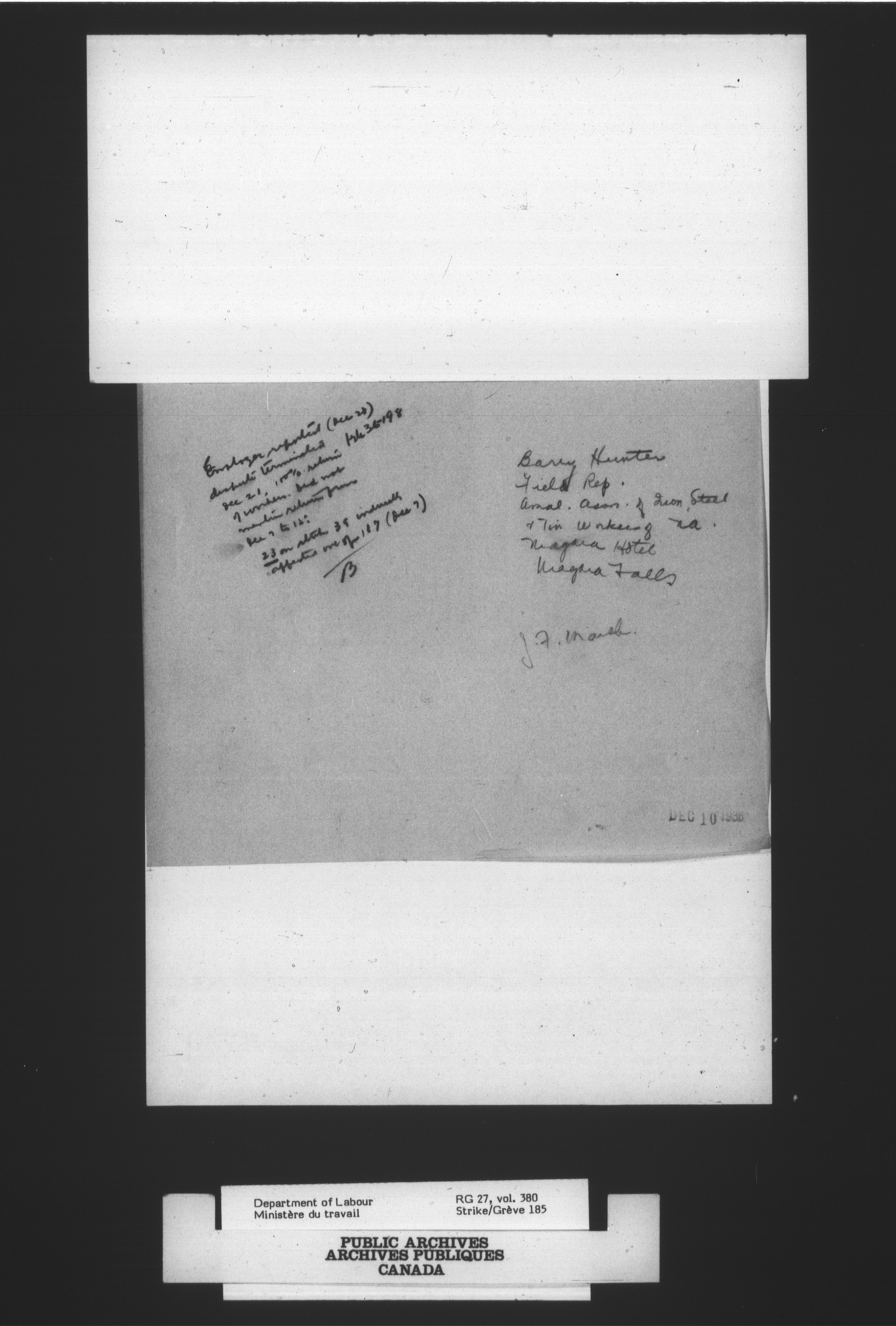 Department of Labour, Economics and Research Branch : Strikes and lockout files - 2989