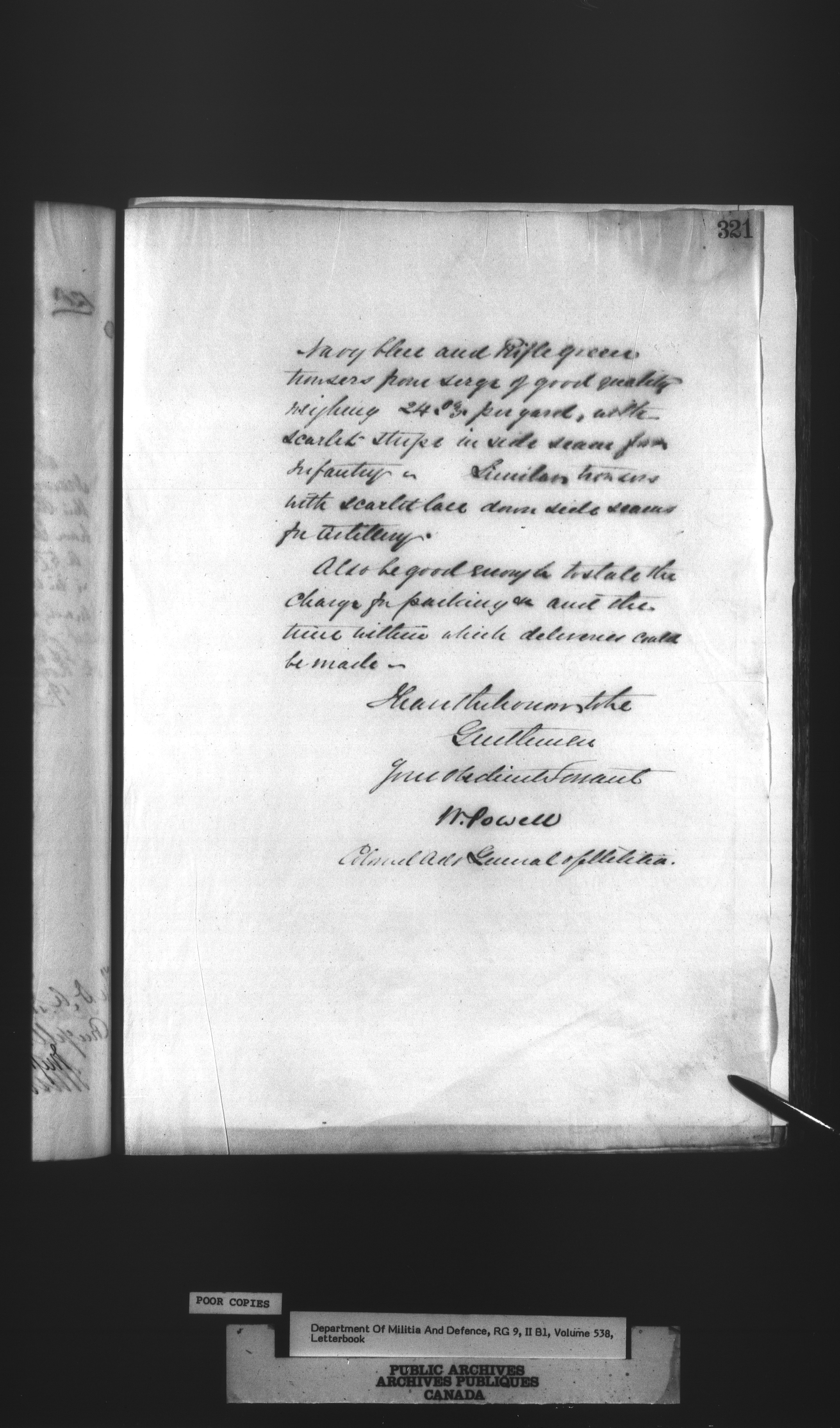 Correspondence of the General Officer Commanding (GOC) of the Canadian Militia and his predecessor, the Adjutant General - 299