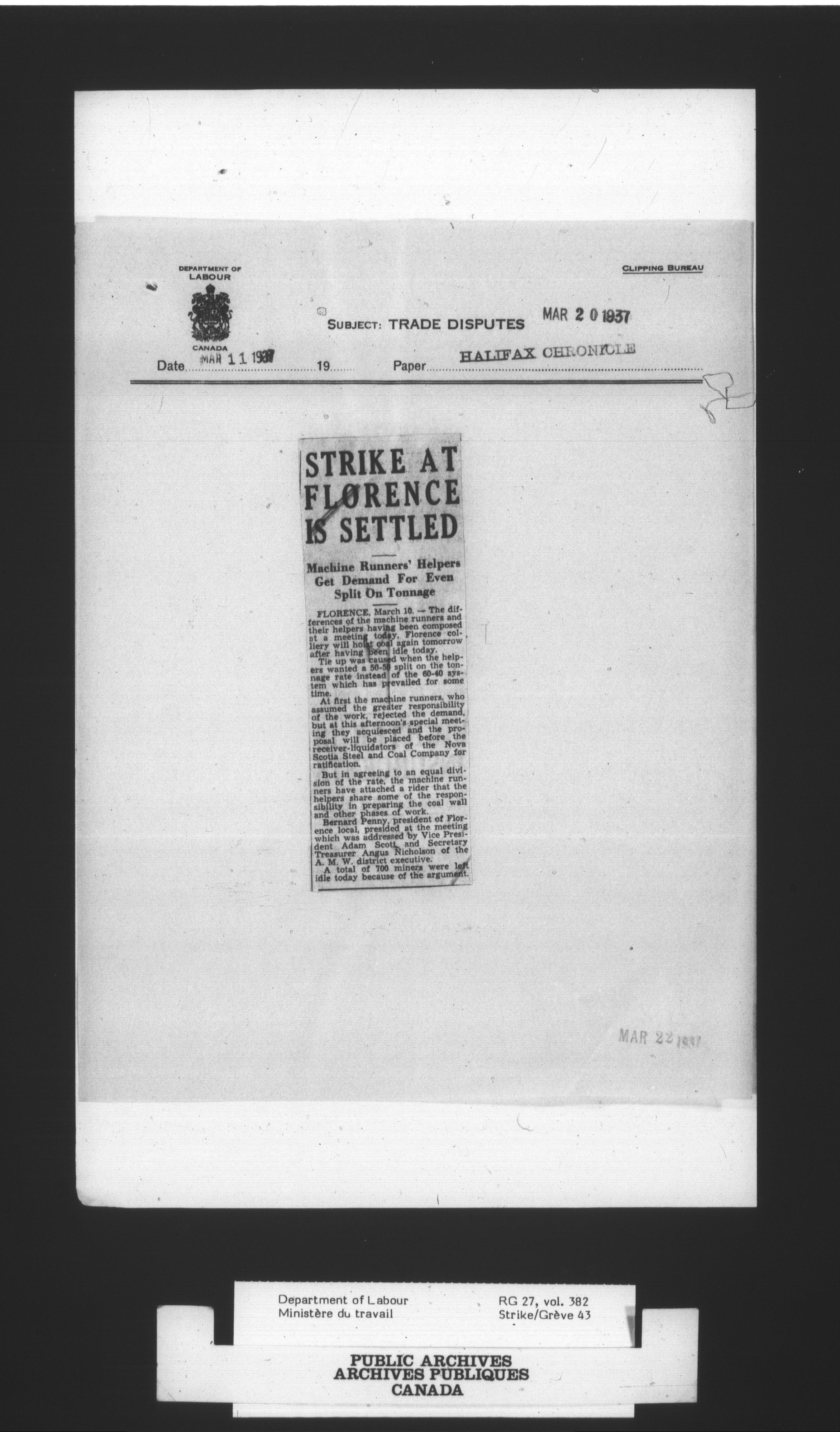 Department of Labour, Economics and Research Branch : Strikes and lockout files - 2991