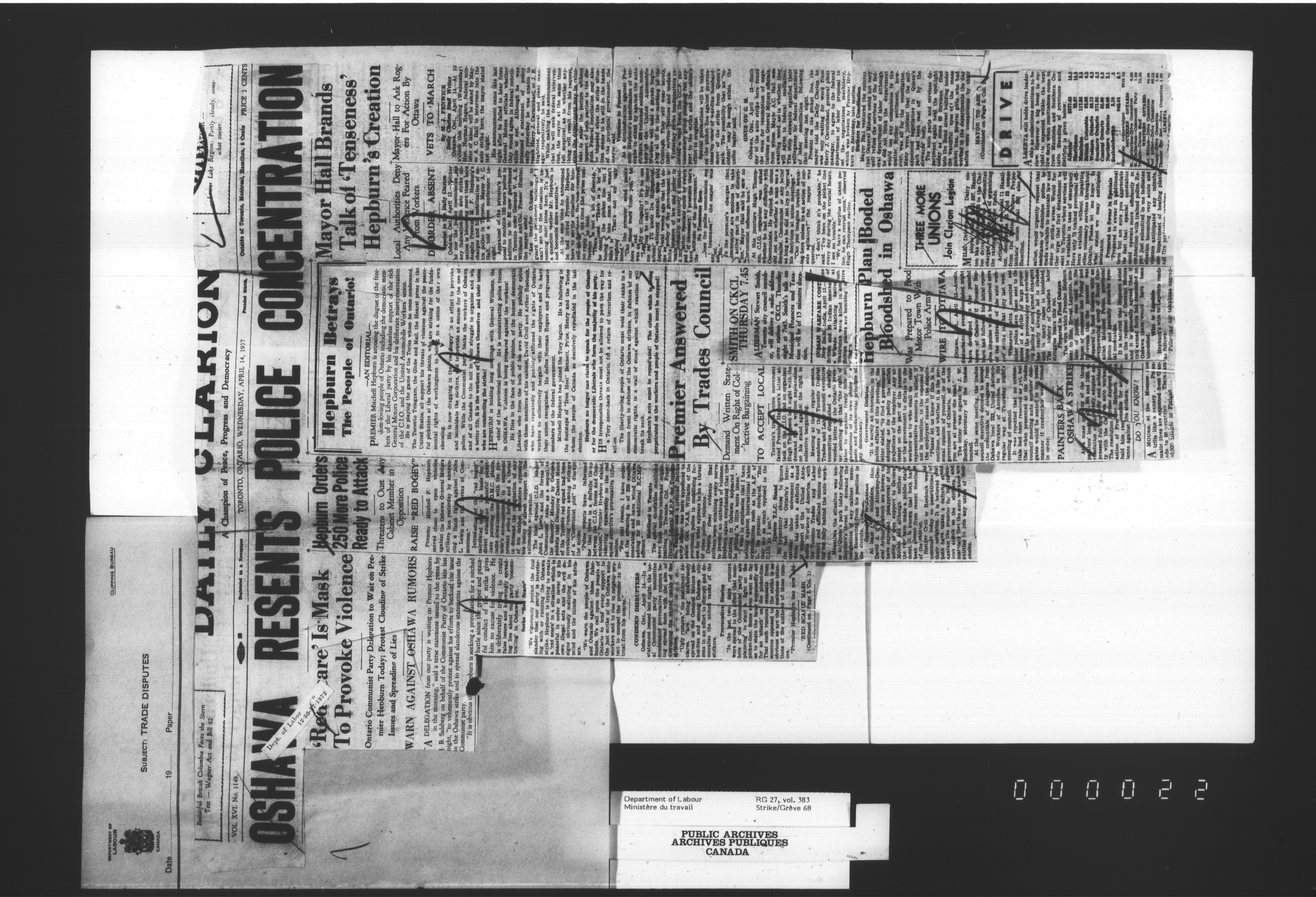 Department of Labour, Economics and Research Branch : Strikes and lockout files - 2992