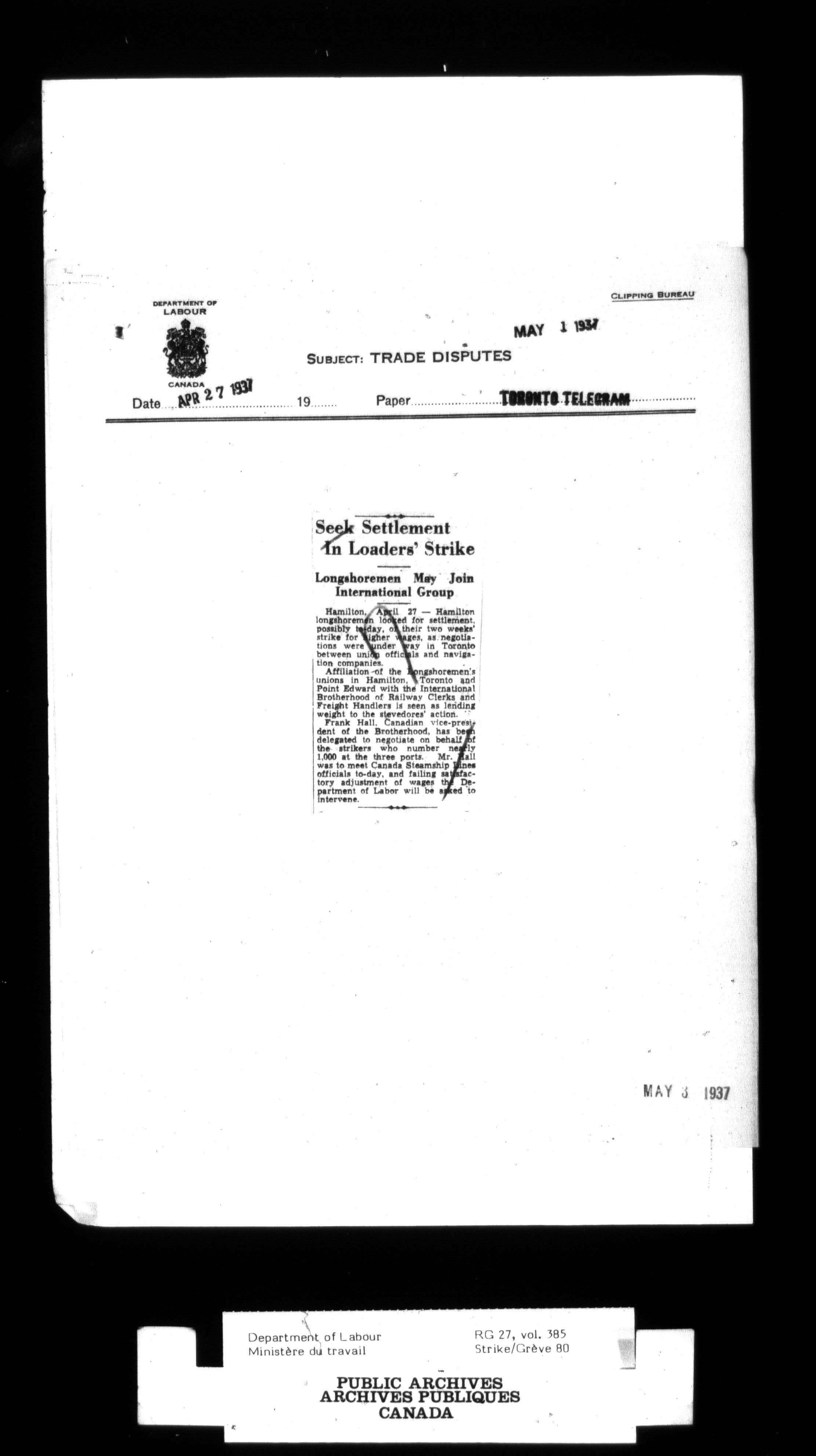 Department of Labour, Economics and Research Branch : Strikes and lockout files - 2993