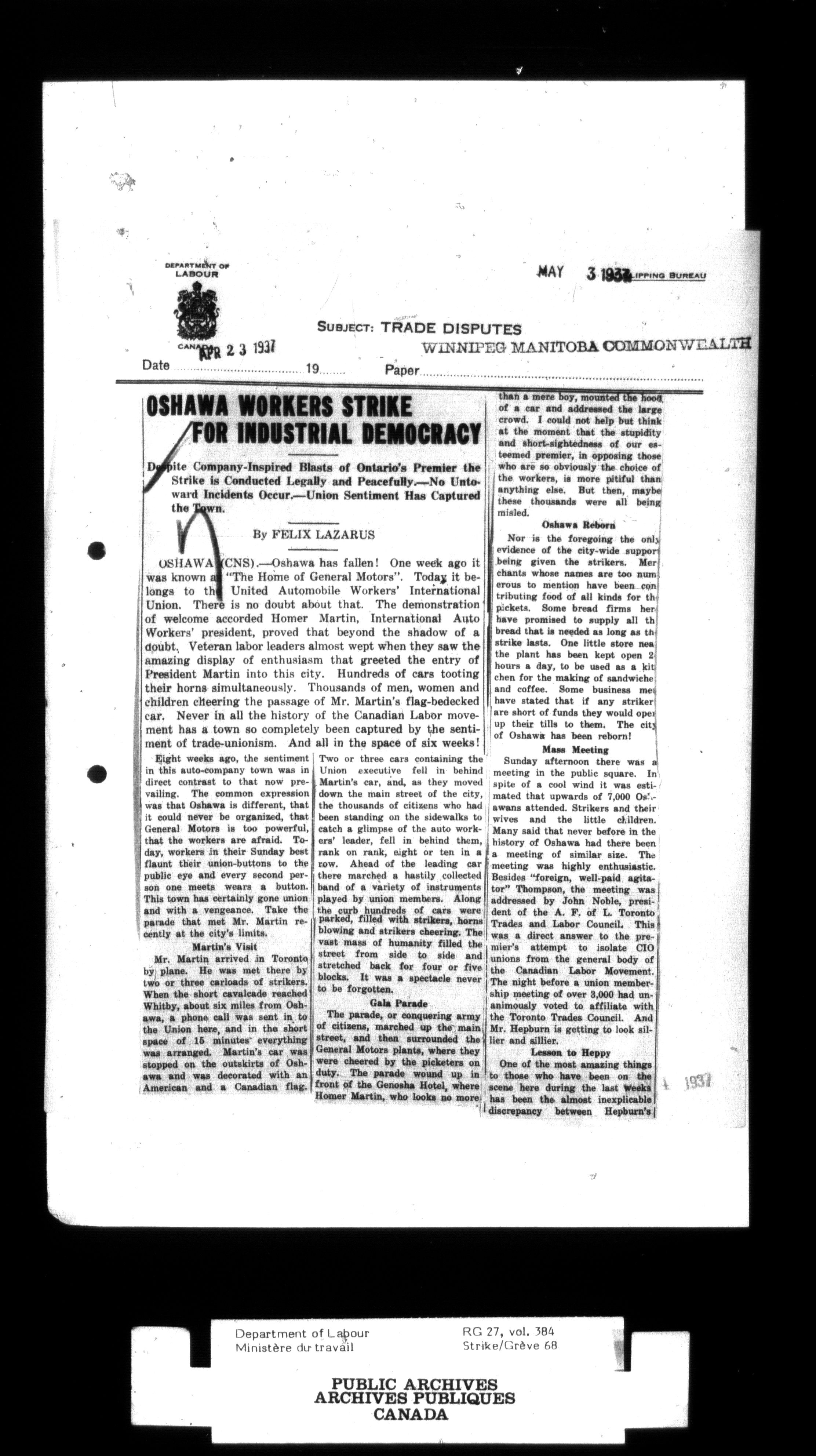 Department of Labour, Economics and Research Branch : Strikes and lockout files - 2993