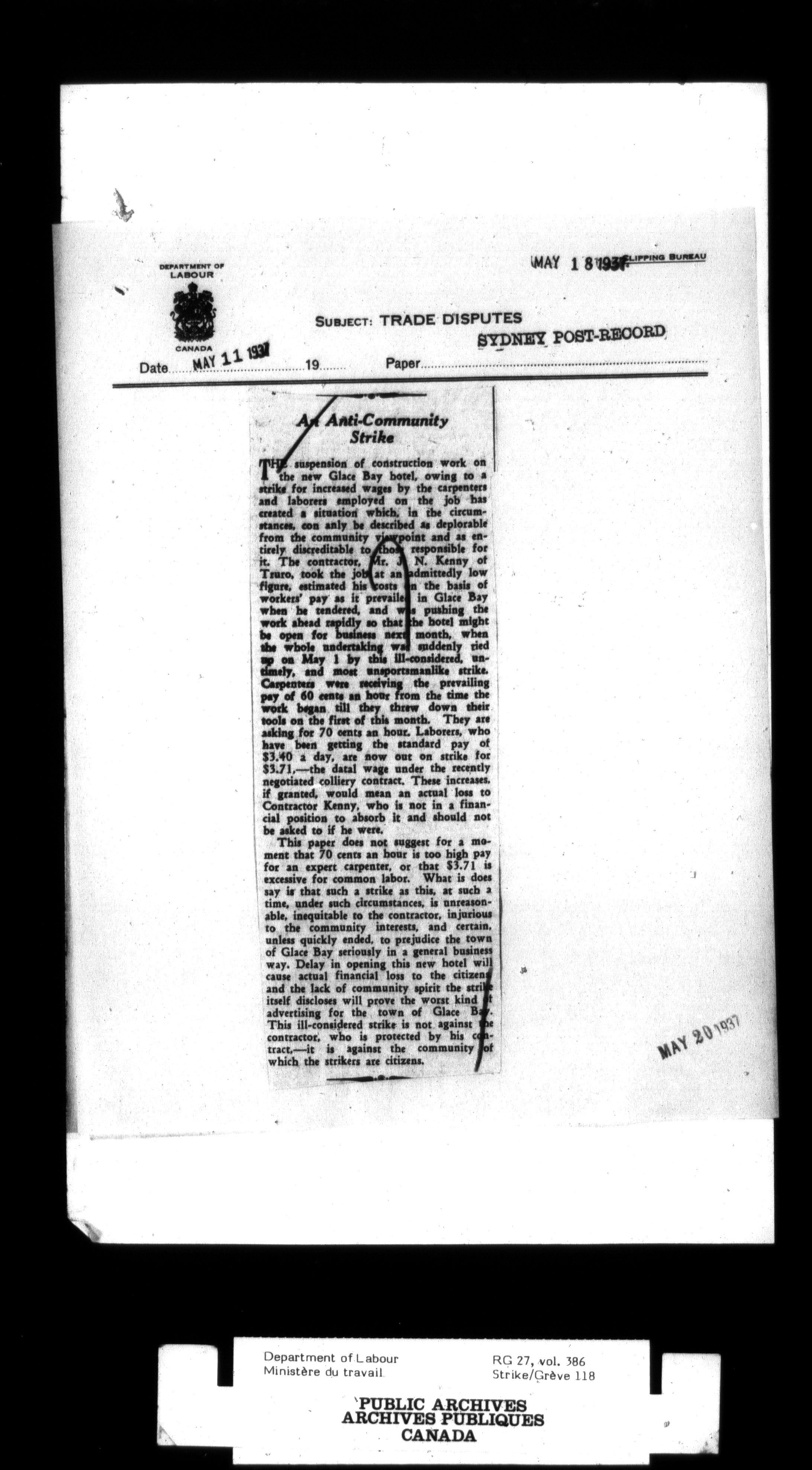 Department of Labour, Economics and Research Branch : Strikes and lockout files - 2995