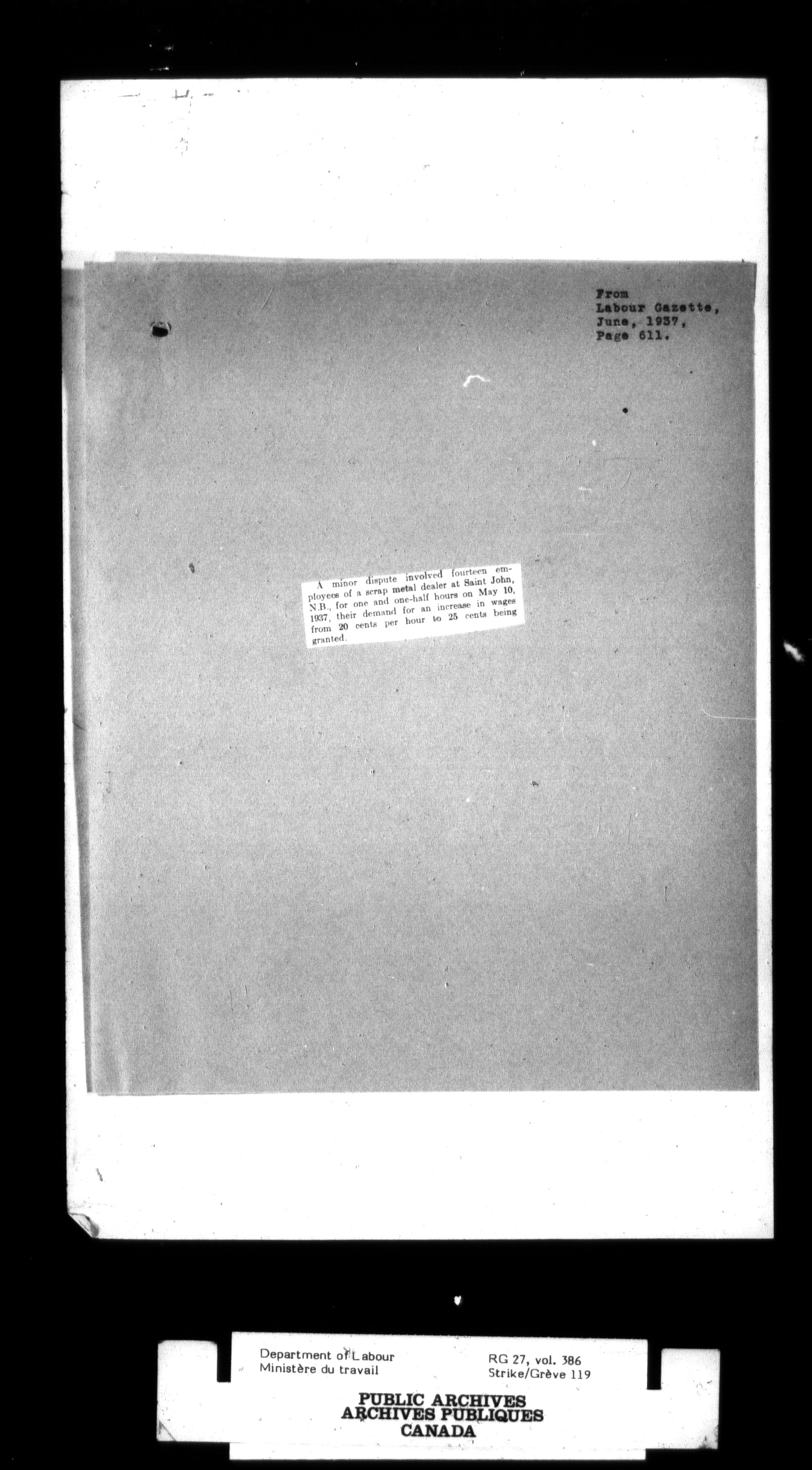 Department of Labour, Economics and Research Branch : Strikes and lockout files - 2995