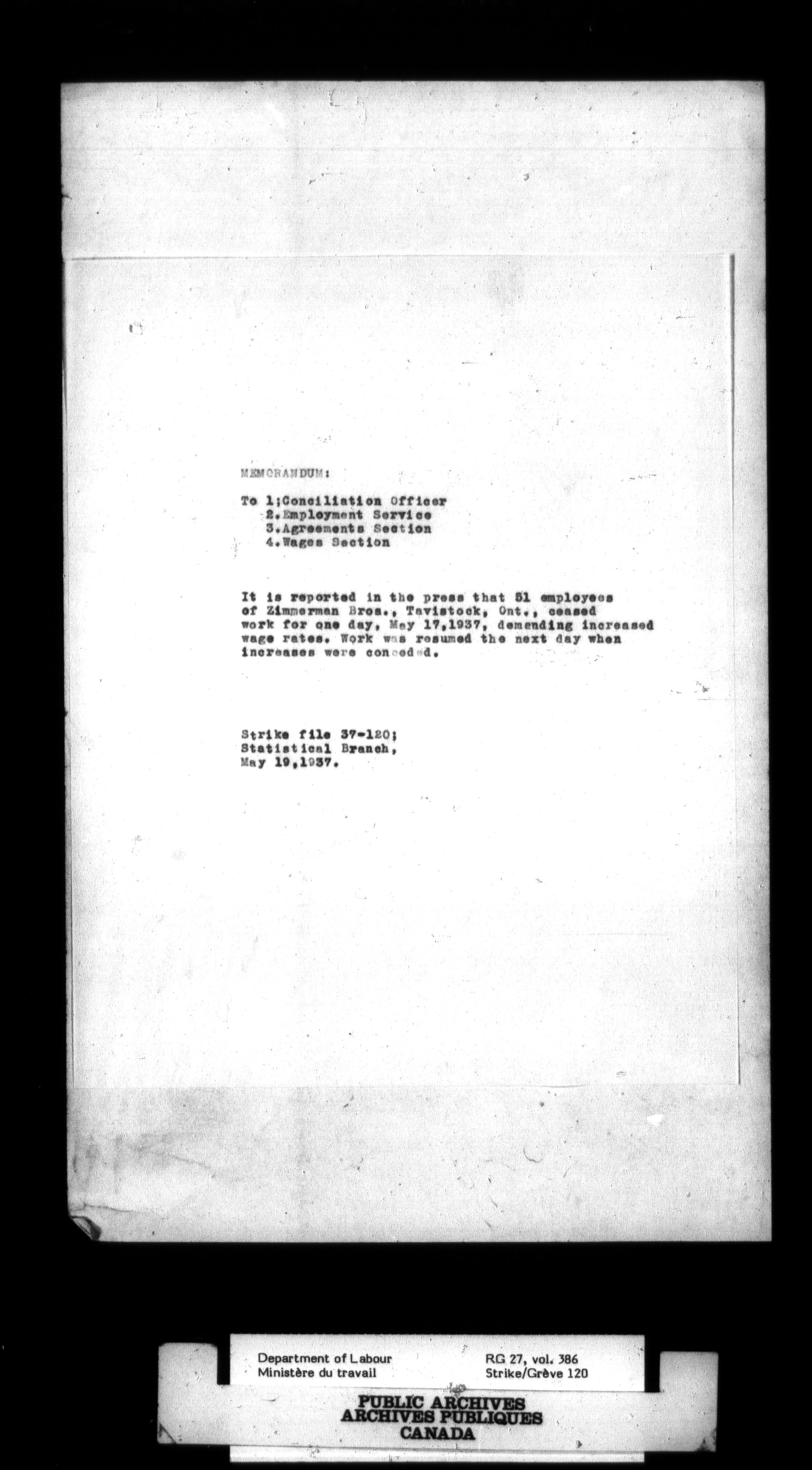 Department of Labour, Economics and Research Branch : Strikes and lockout files - 2995
