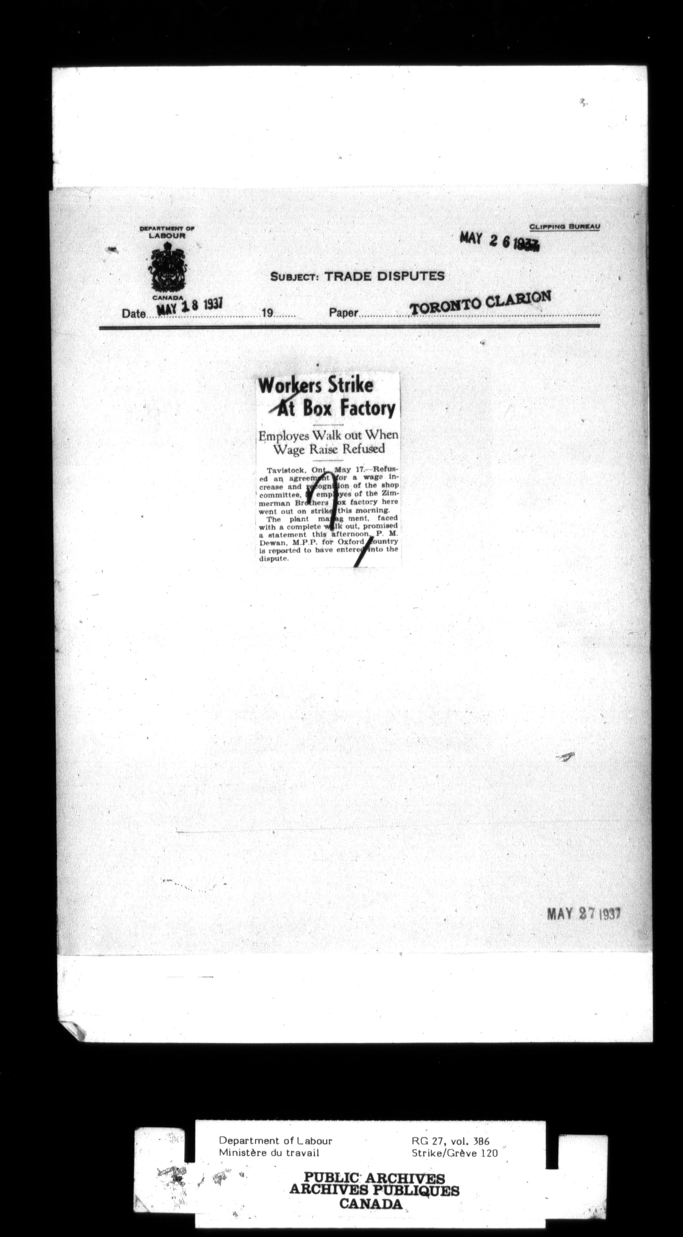 Department of Labour, Economics and Research Branch : Strikes and lockout files - 2995