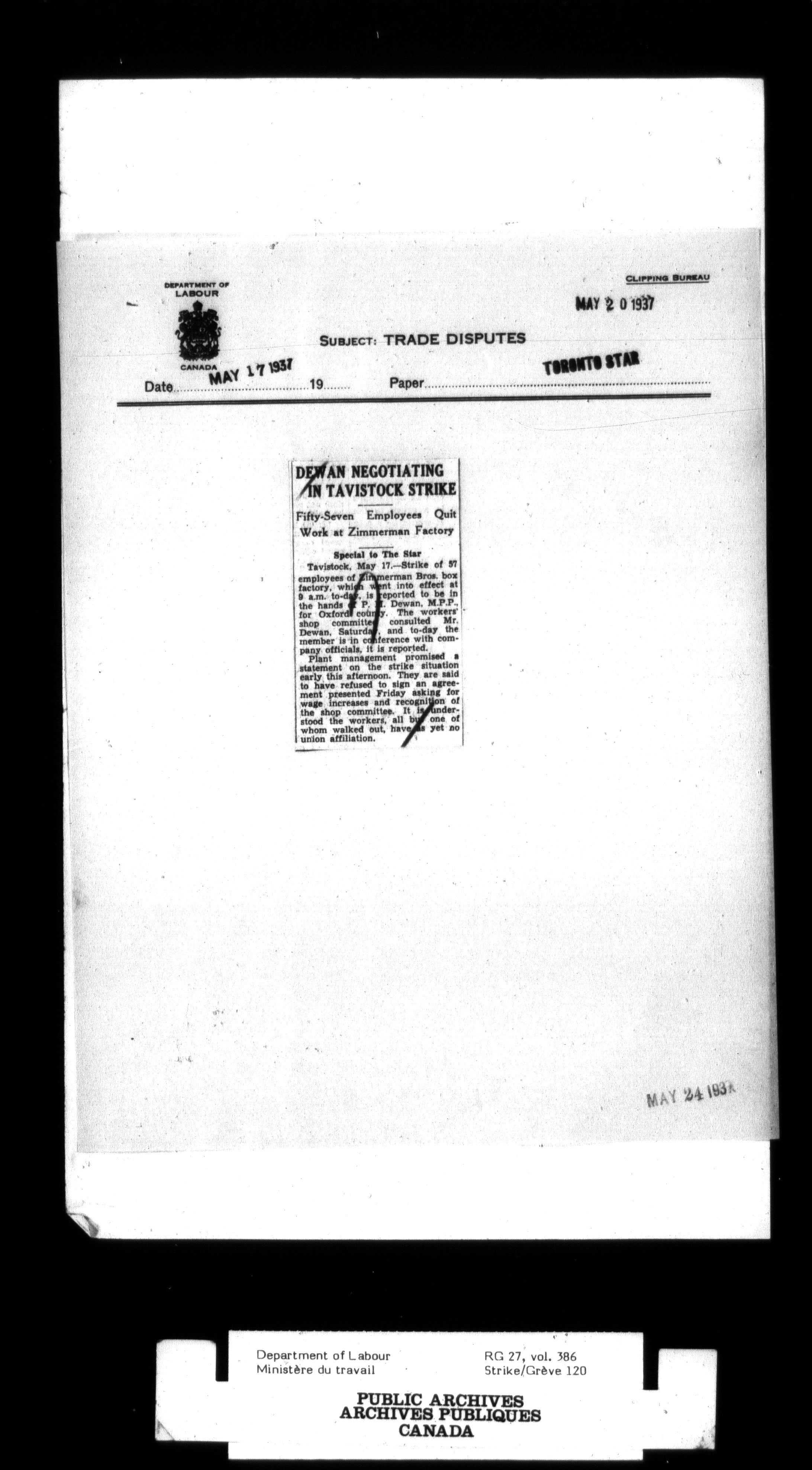 Department of Labour, Economics and Research Branch : Strikes and lockout files - 2995