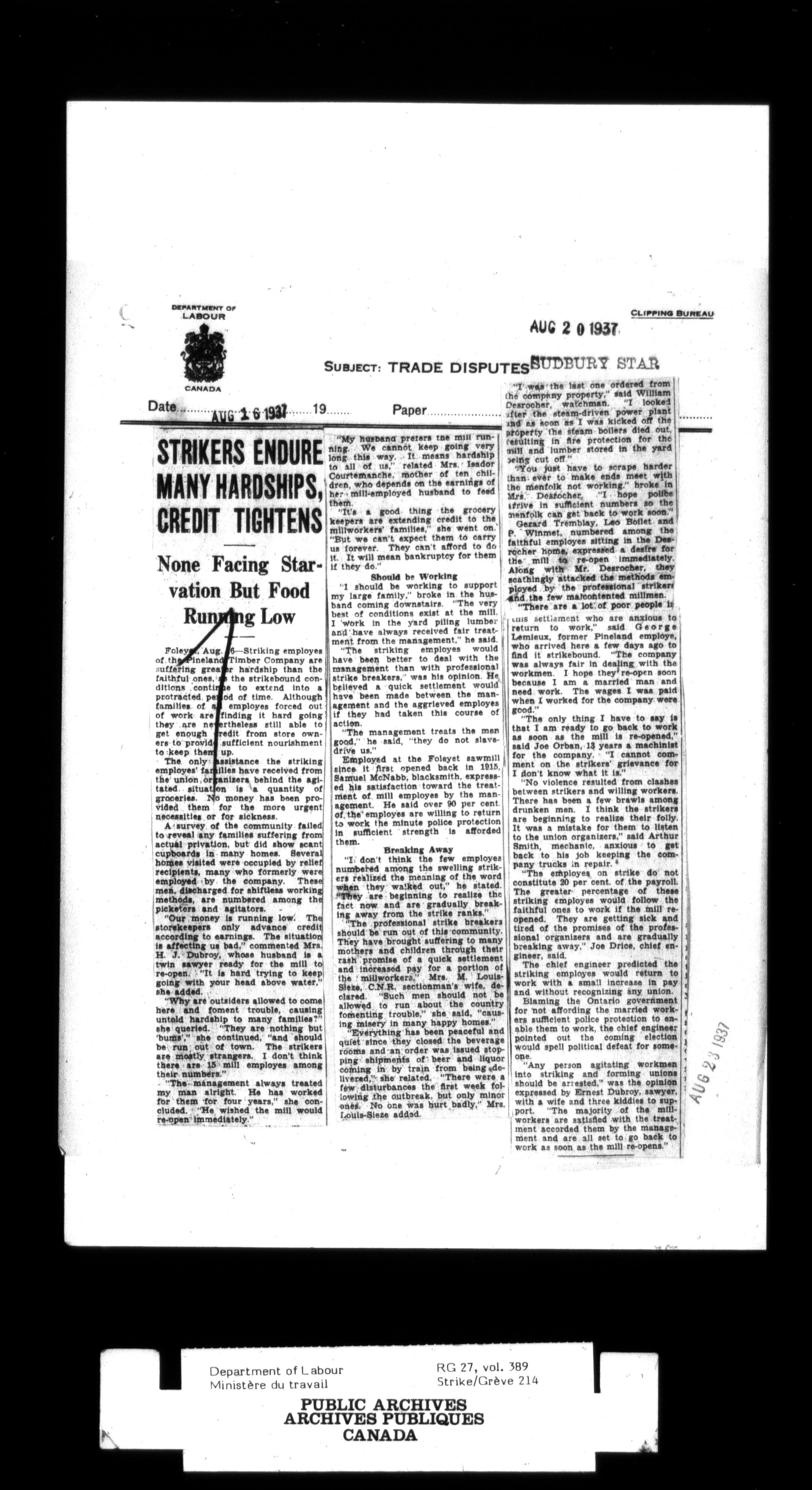 Department of Labour, Economics and Research Branch : Strikes and lockout files - 2997