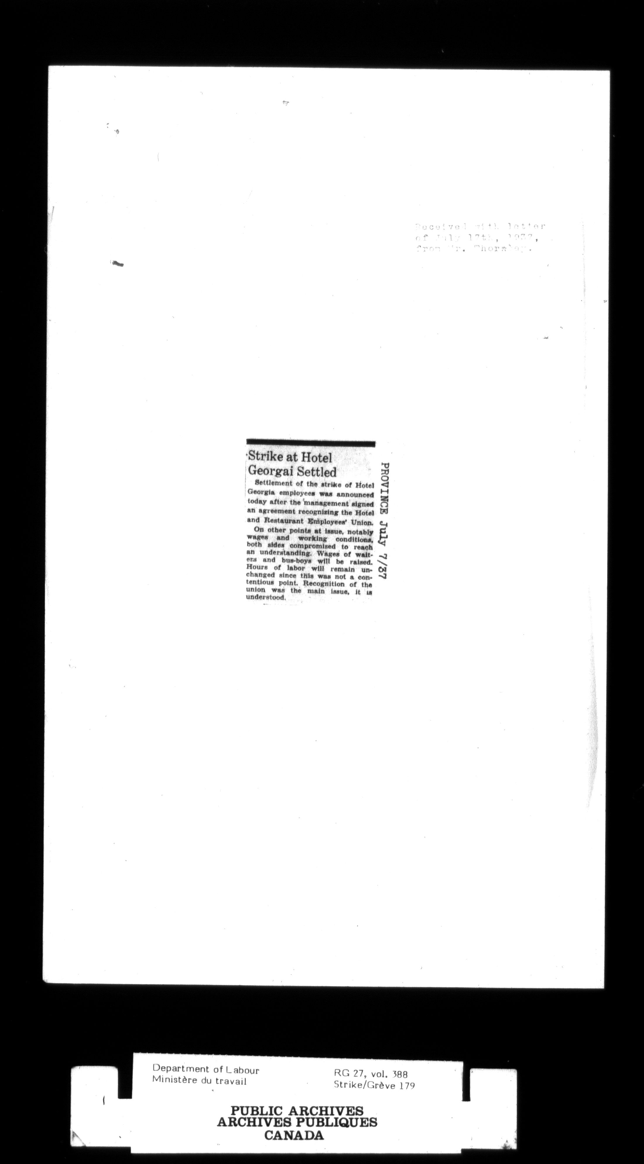 Department of Labour, Economics and Research Branch : Strikes and lockout files - 2997