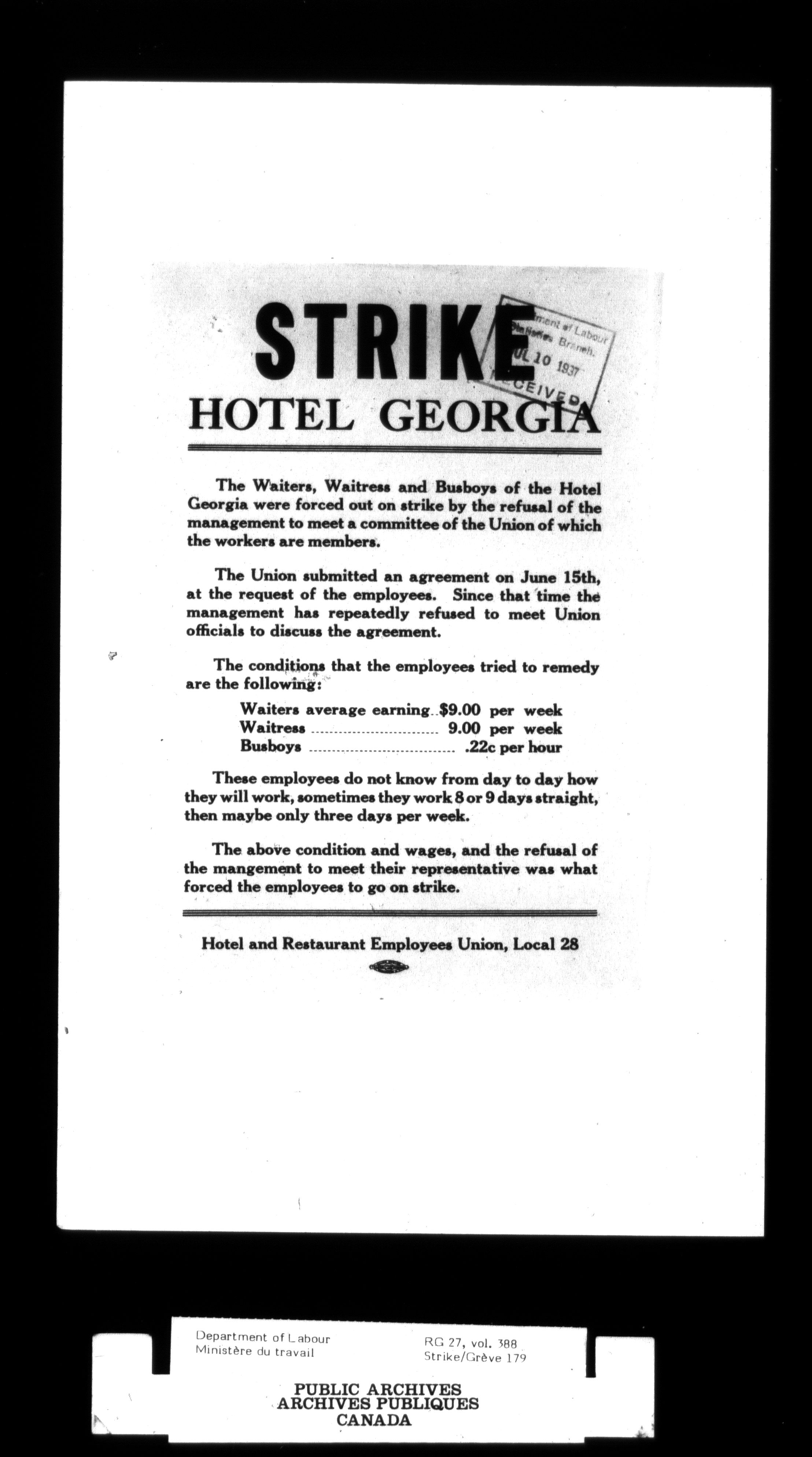 Department of Labour, Economics and Research Branch : Strikes and lockout files - 2997