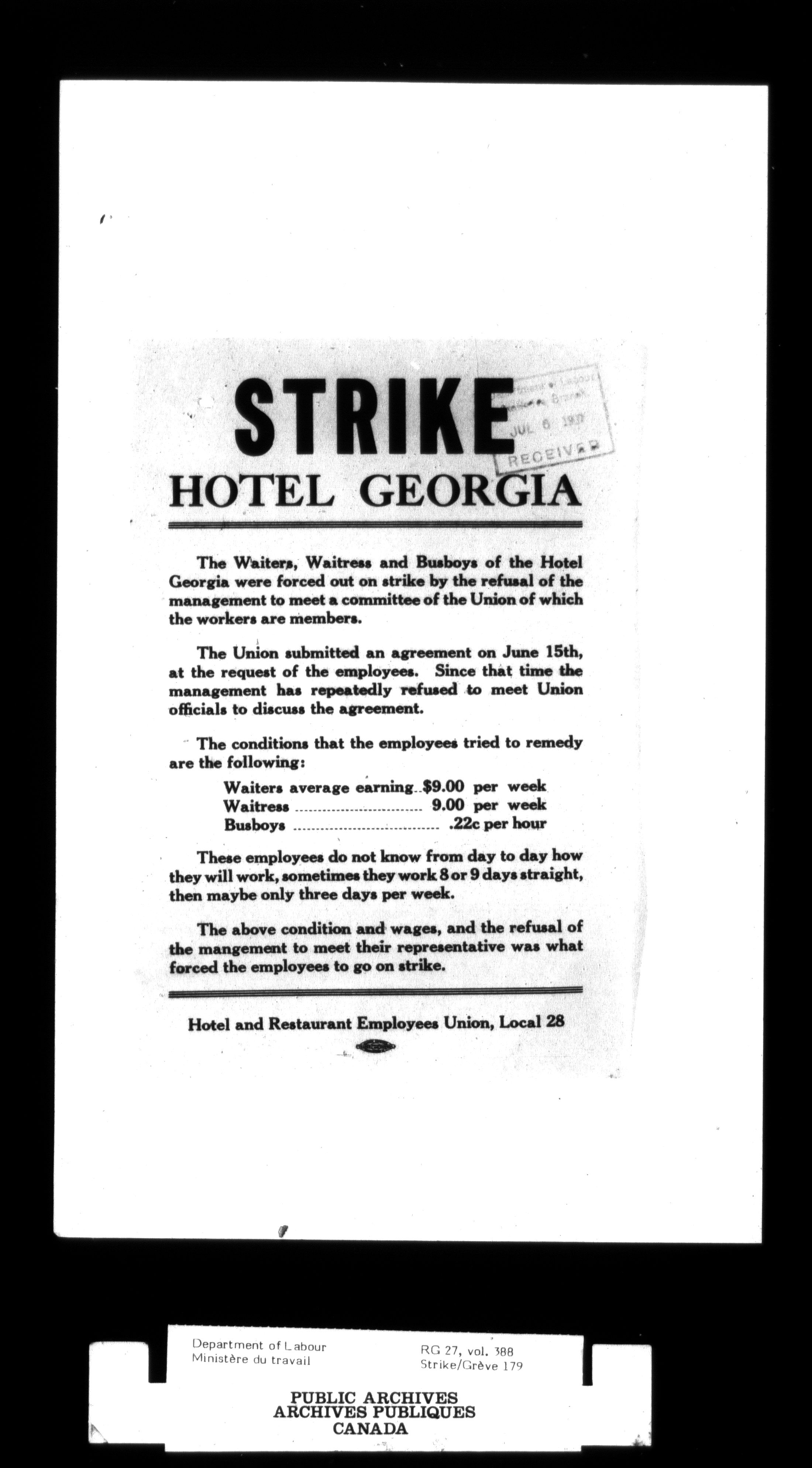Department of Labour, Economics and Research Branch : Strikes and lockout files - 2997