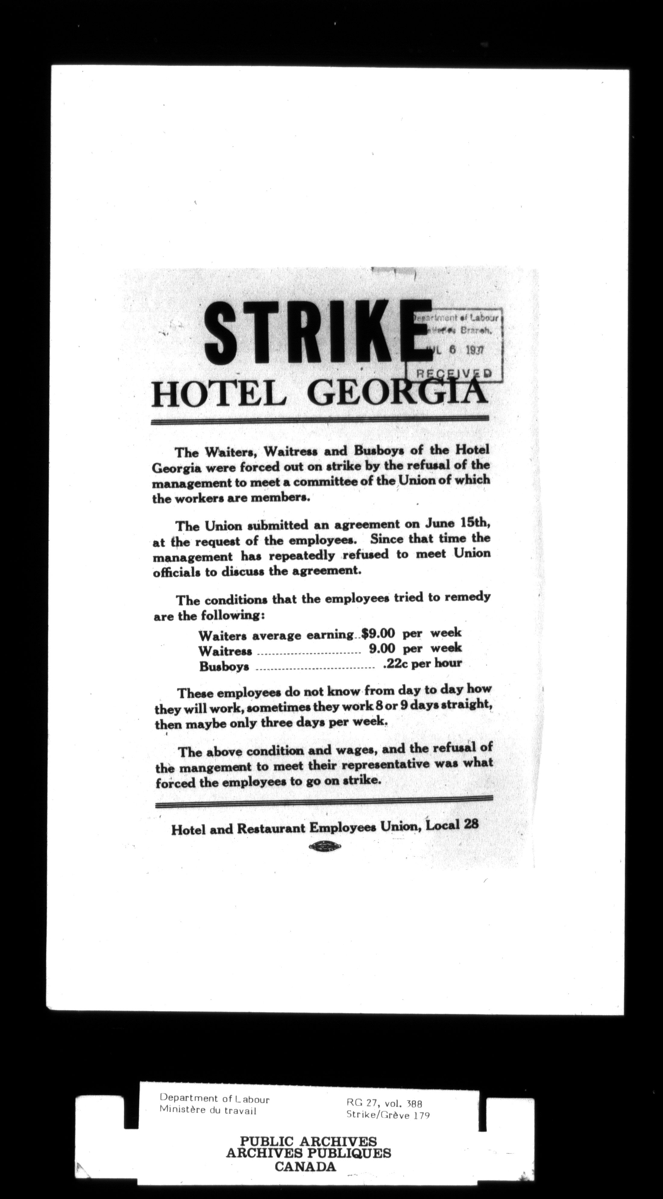 Department of Labour, Economics and Research Branch : Strikes and lockout files - 2997