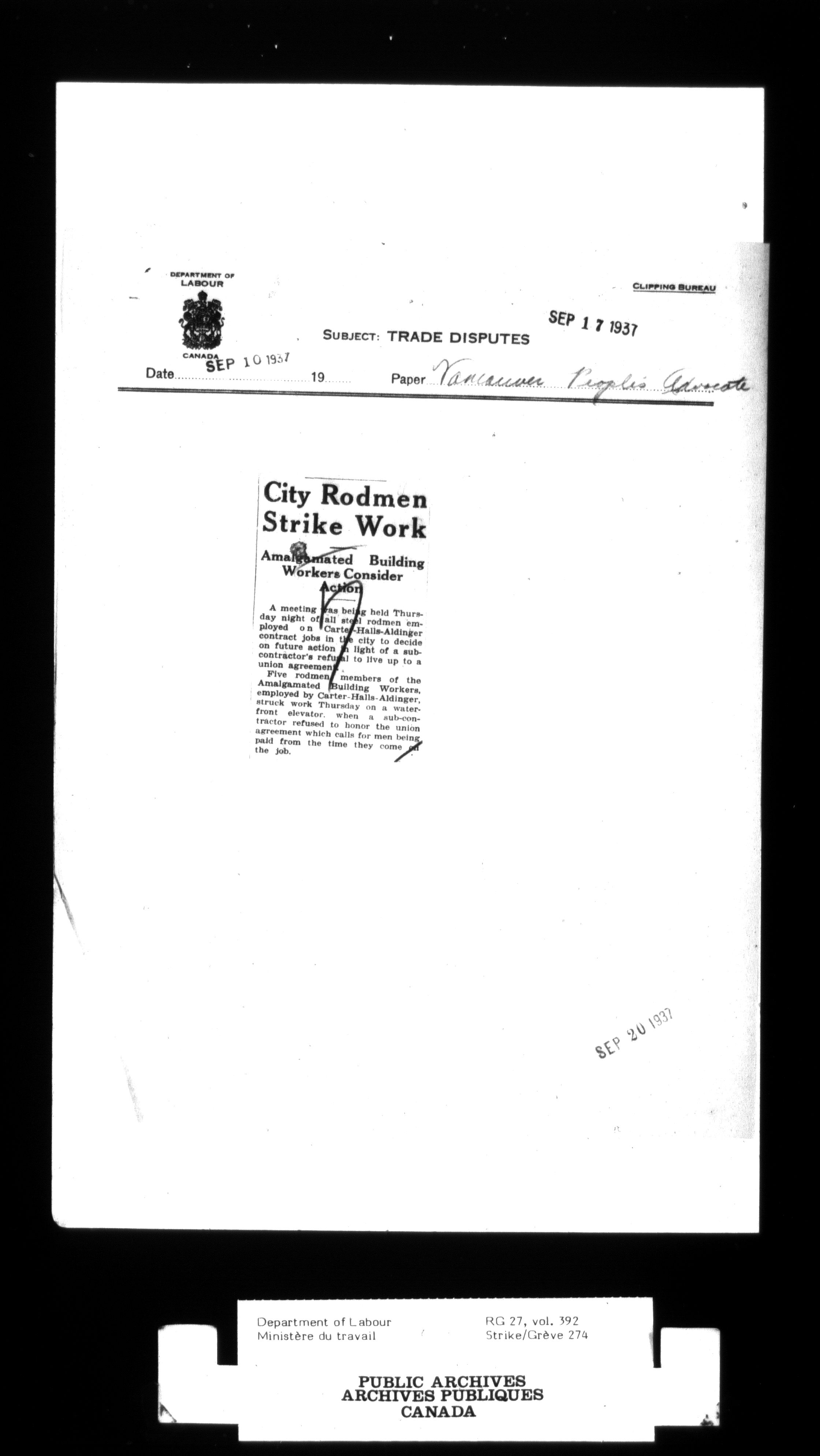 Department of Labour, Economics and Research Branch : Strikes and lockout files - 3000