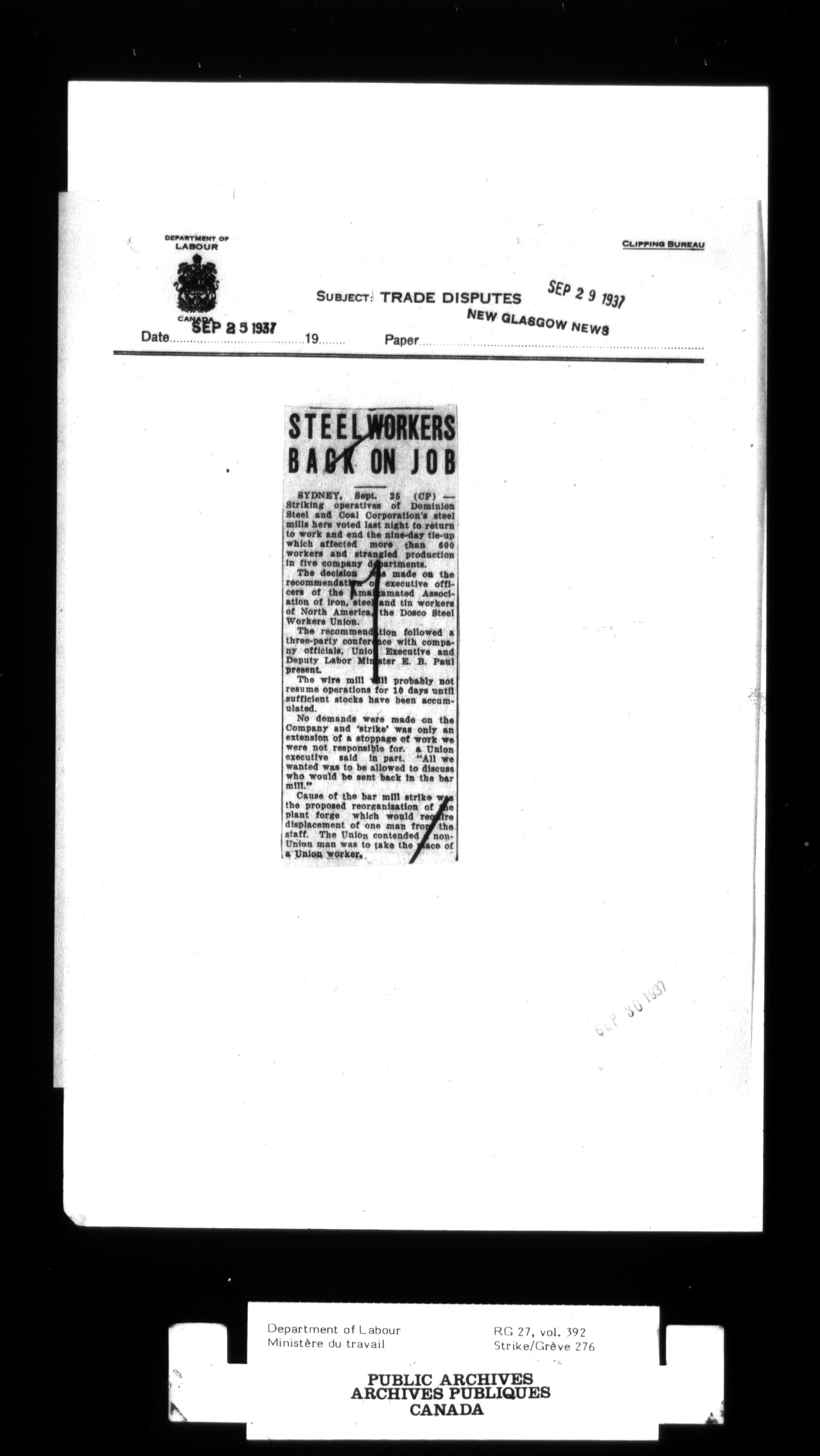 Department of Labour, Economics and Research Branch : Strikes and lockout files - 3000
