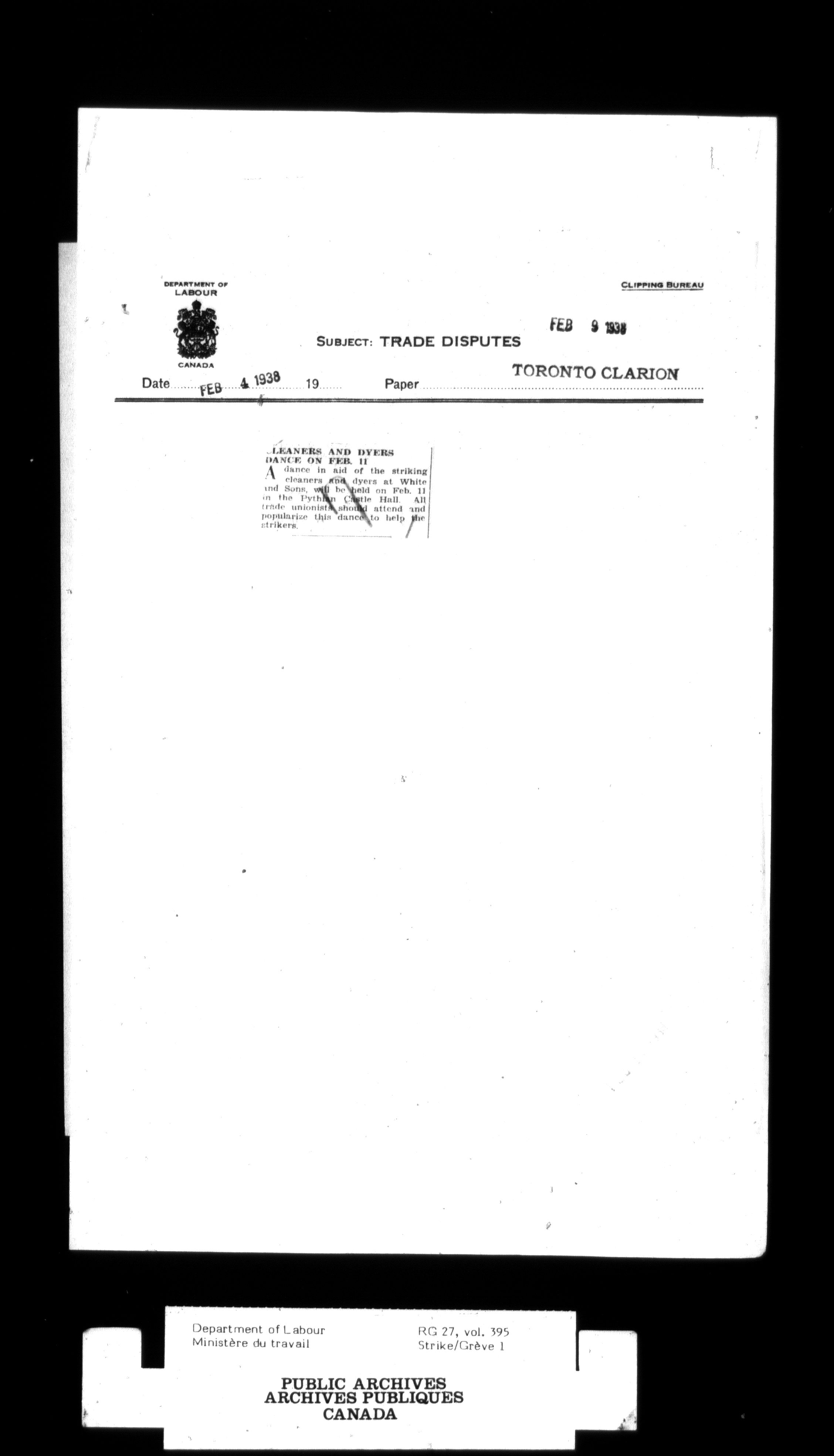 Department of Labour, Economics and Research Branch : Strikes and lockout files - 3002