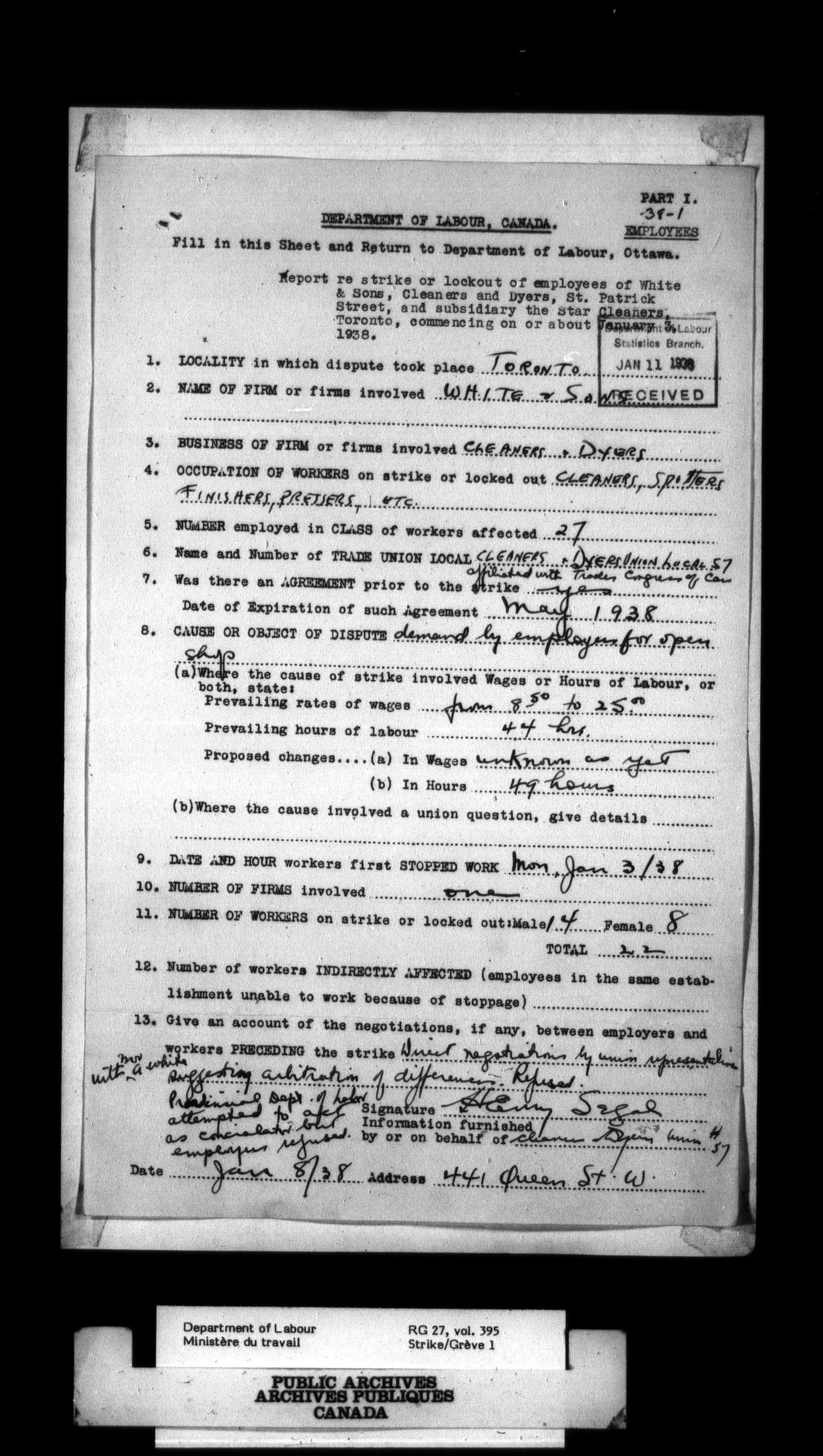 Department of Labour, Economics and Research Branch : Strikes and lockout files - 3002