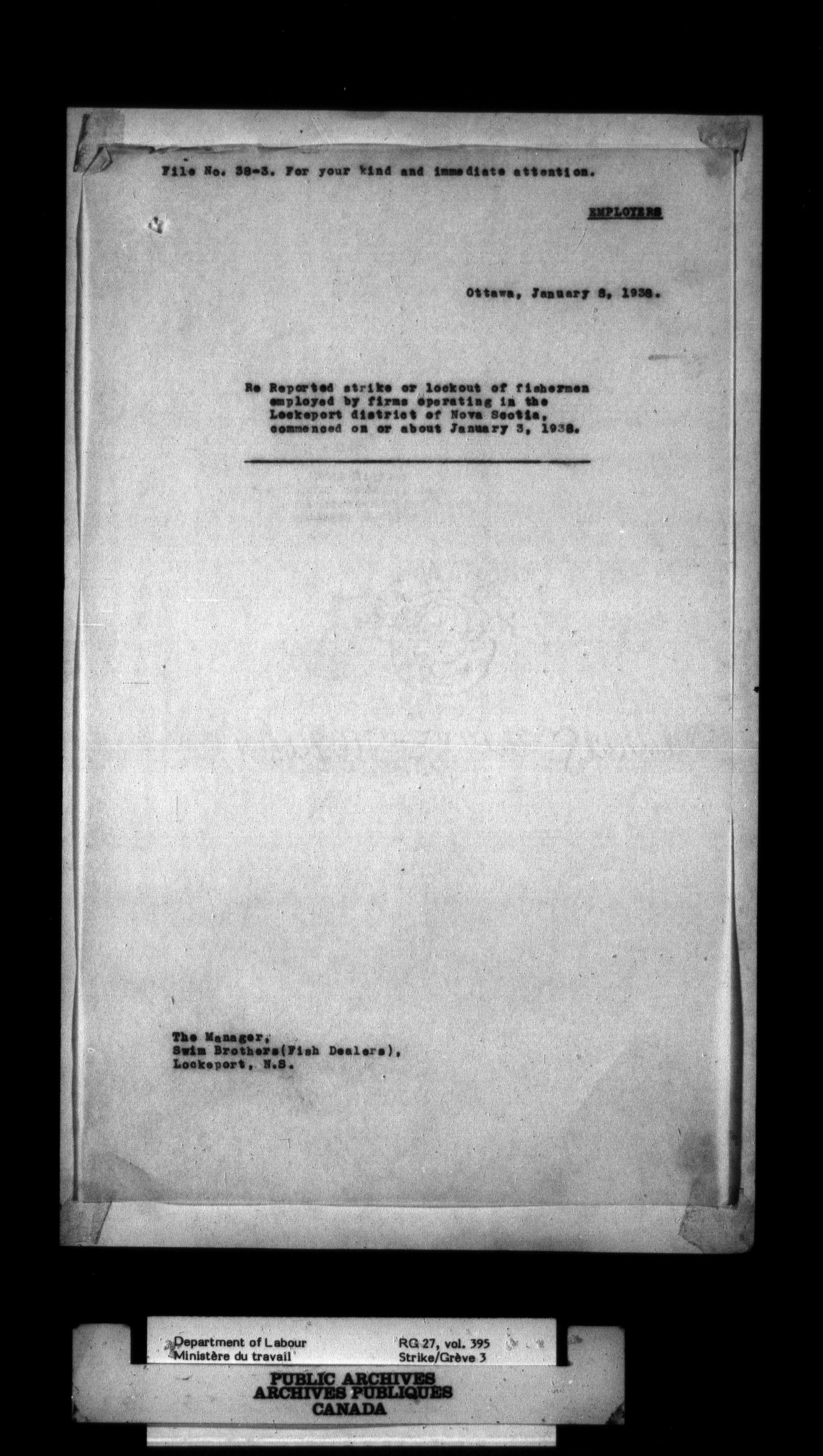 Department of Labour, Economics and Research Branch : Strikes and lockout files - 3002