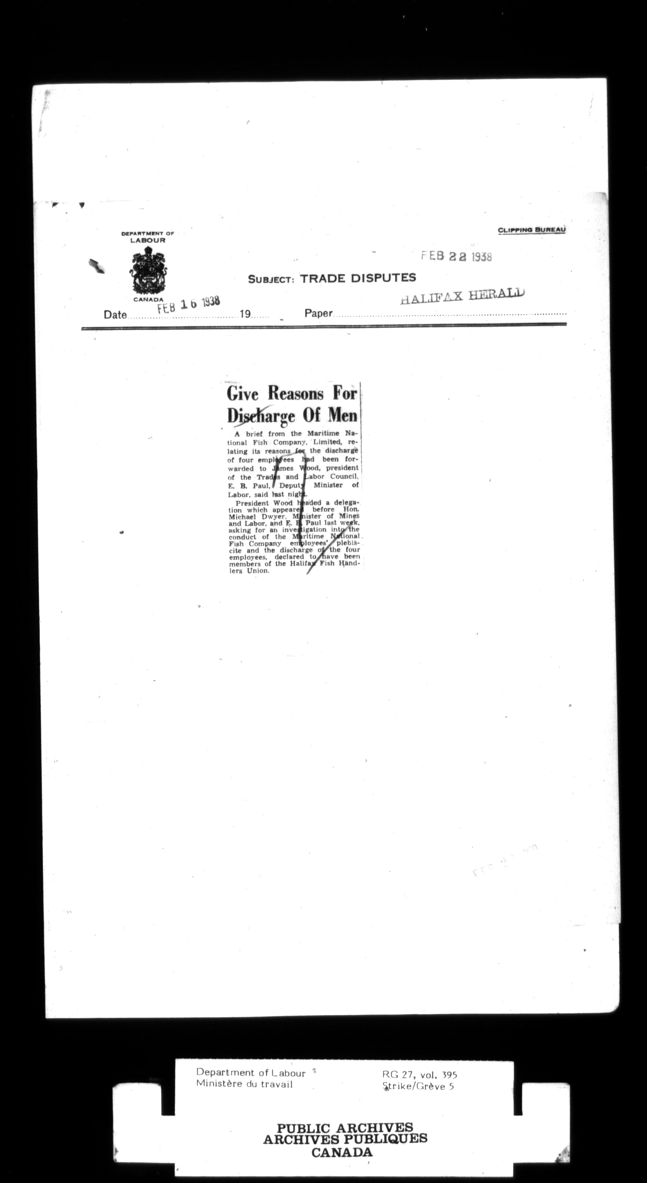 Department of Labour, Economics and Research Branch : Strikes and lockout files : T-3003