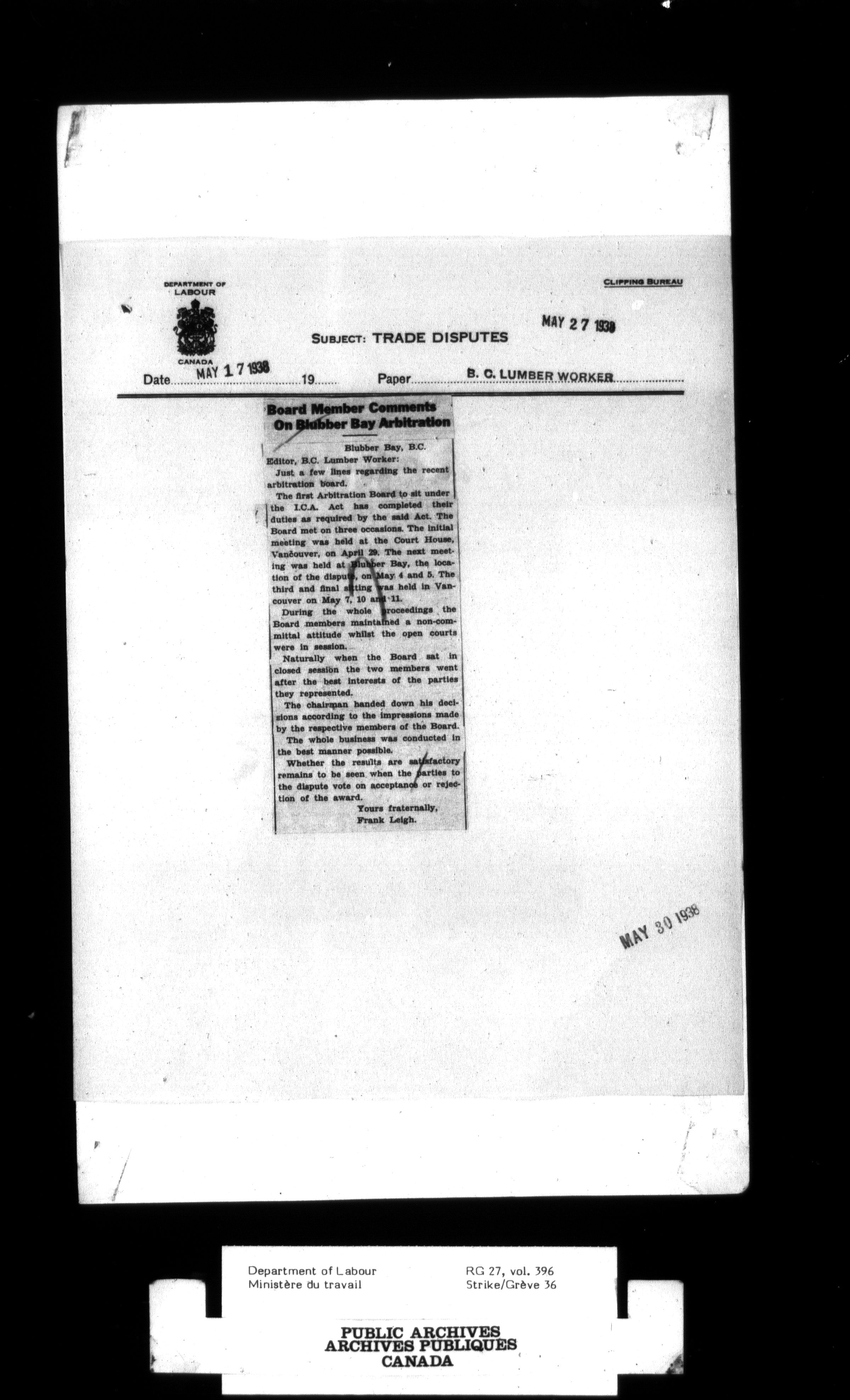 Department of Labour, Economics and Research Branch : Strikes and lockout files - 3004