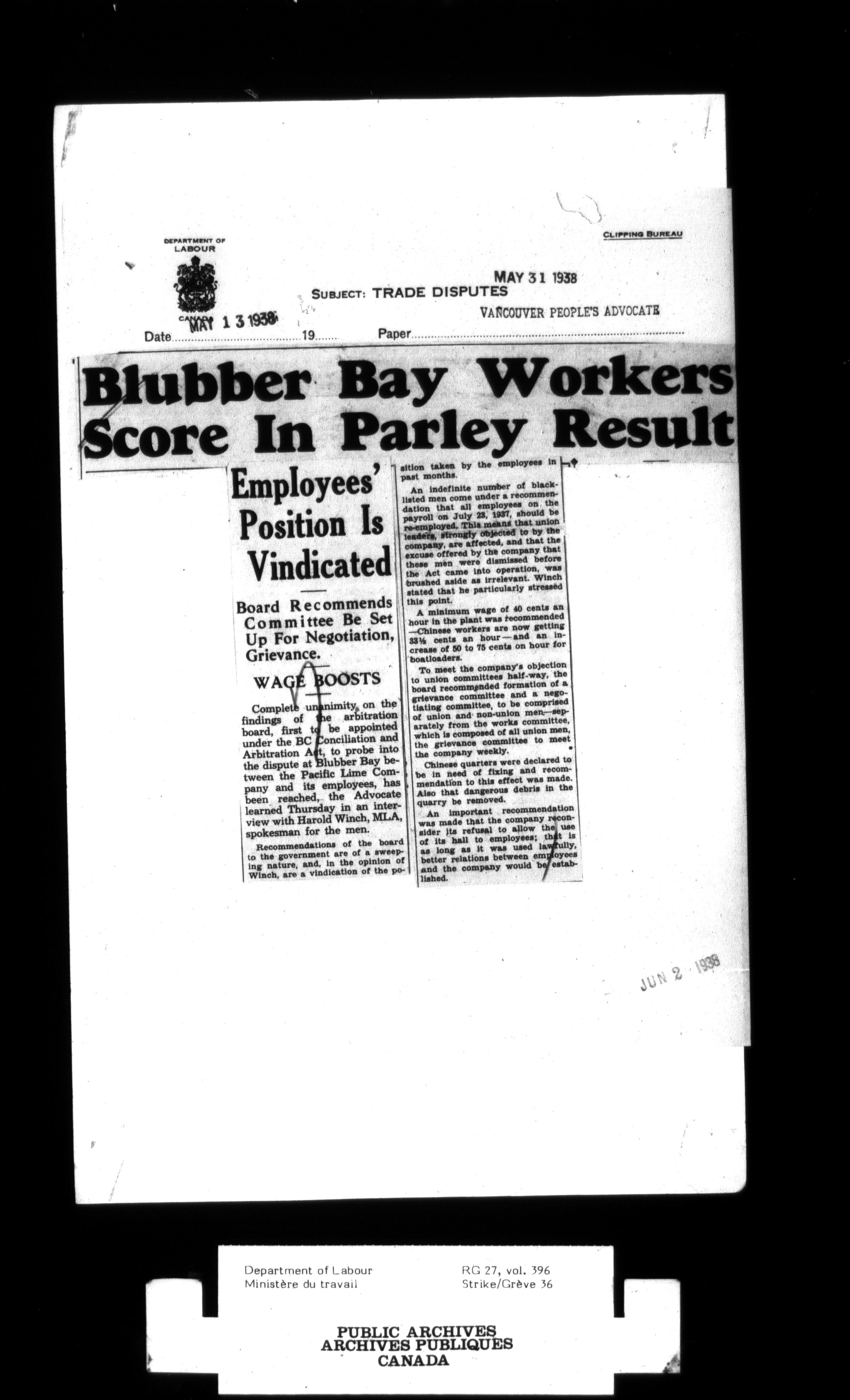 Department of Labour, Economics and Research Branch : Strikes and lockout files - 3004