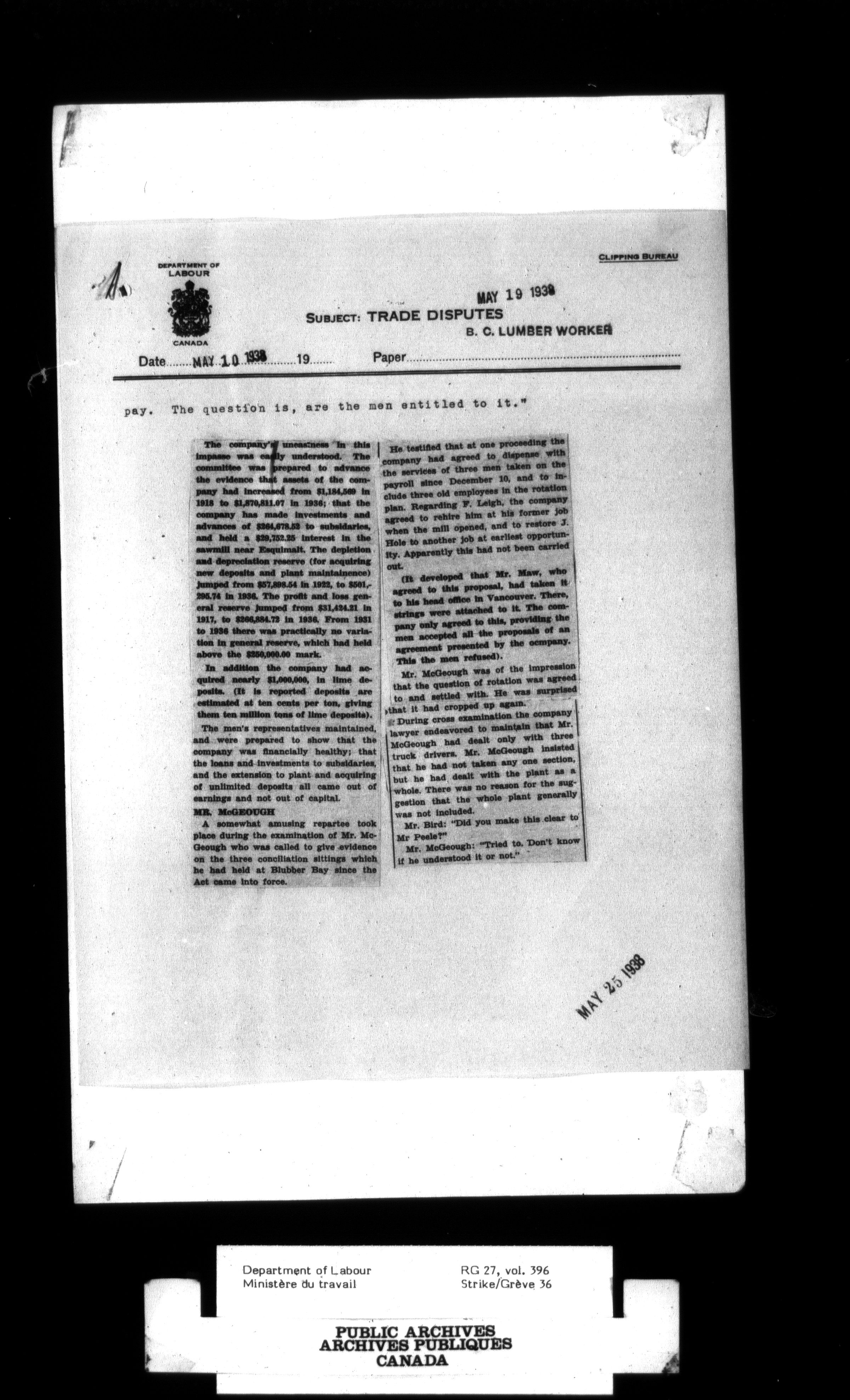 Department of Labour, Economics and Research Branch : Strikes and lockout files - 3004