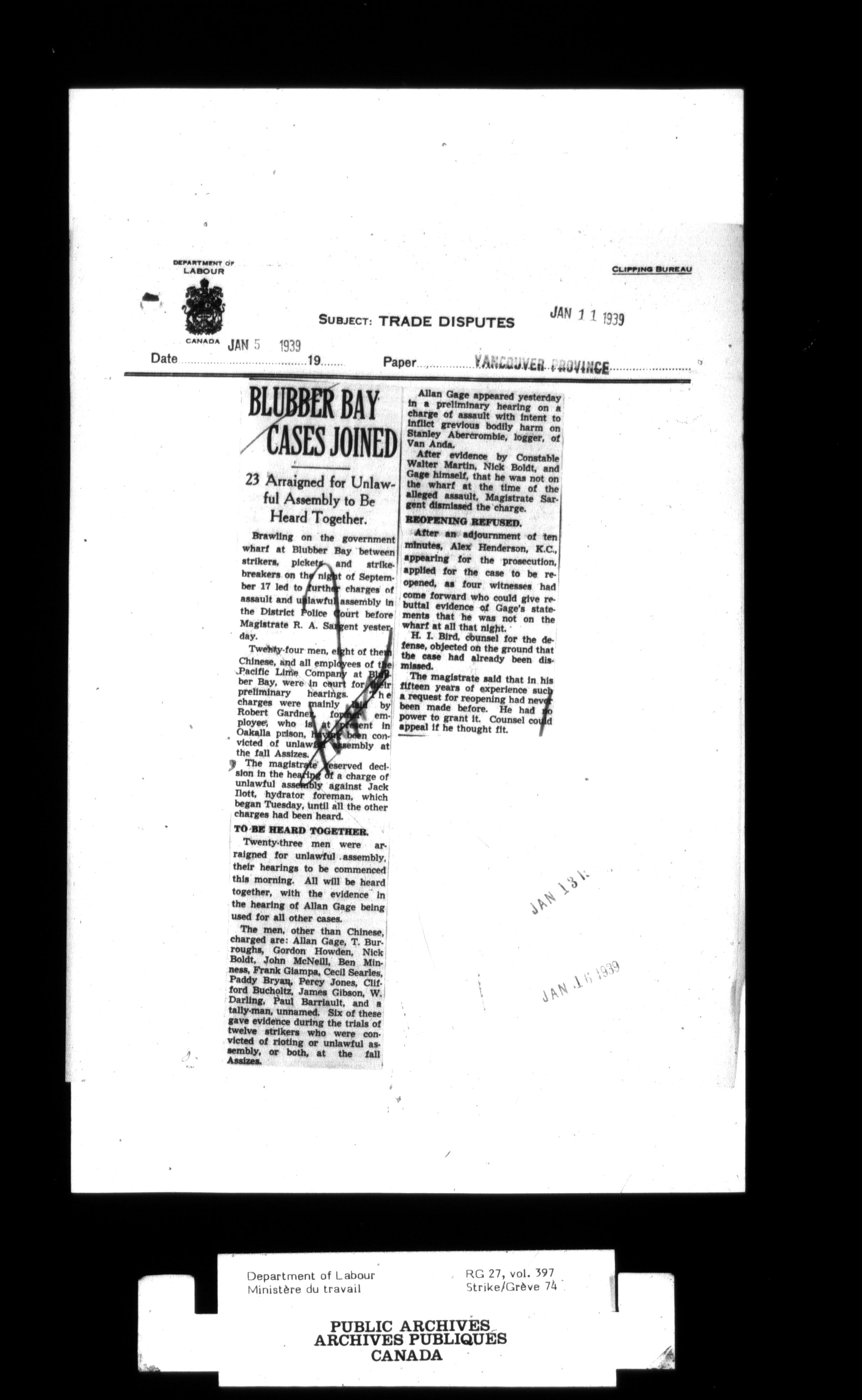 Department of Labour, Economics and Research Branch : Strikes and lockout files - 3005