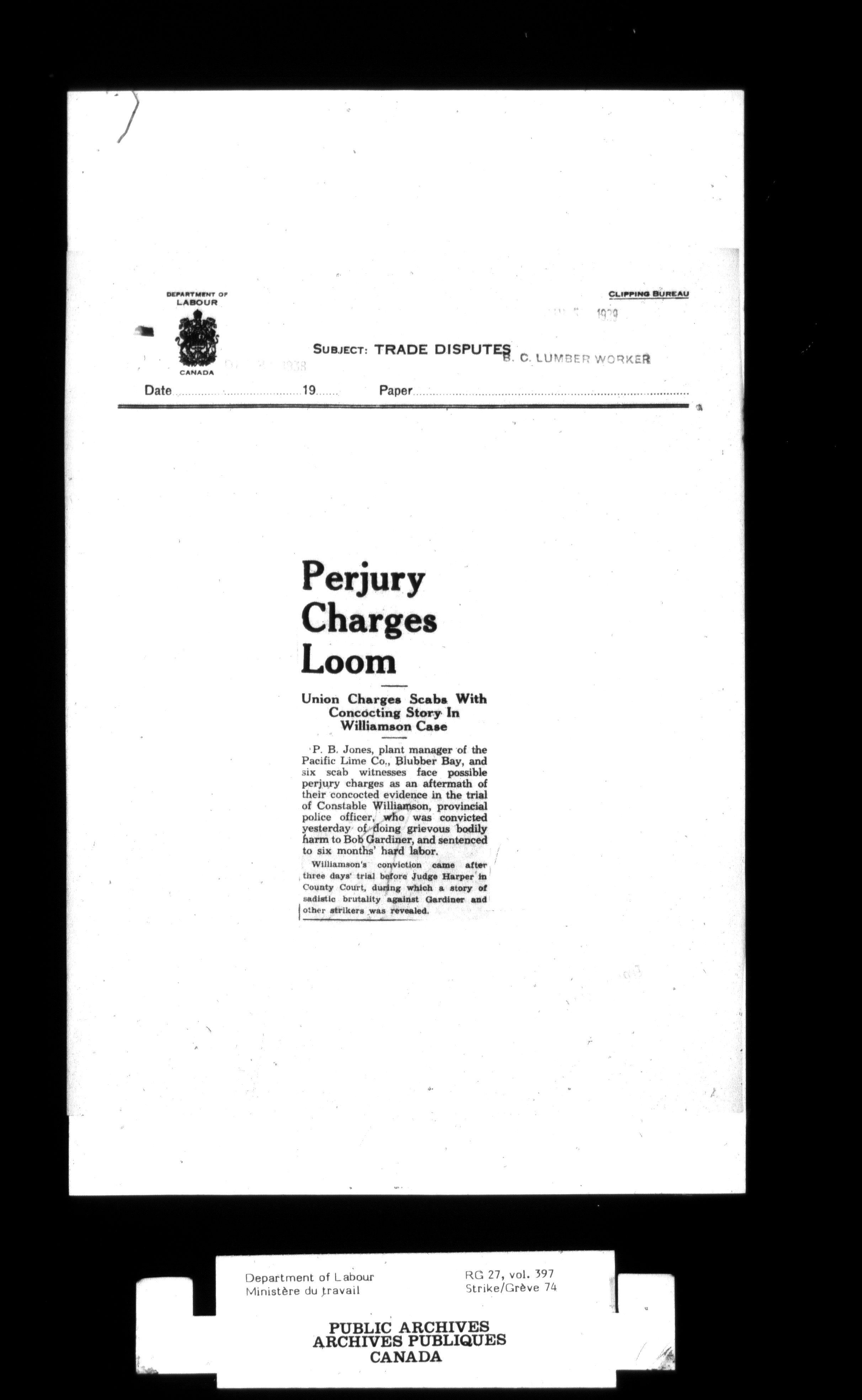 Department of Labour, Economics and Research Branch : Strikes and lockout files : T-3005