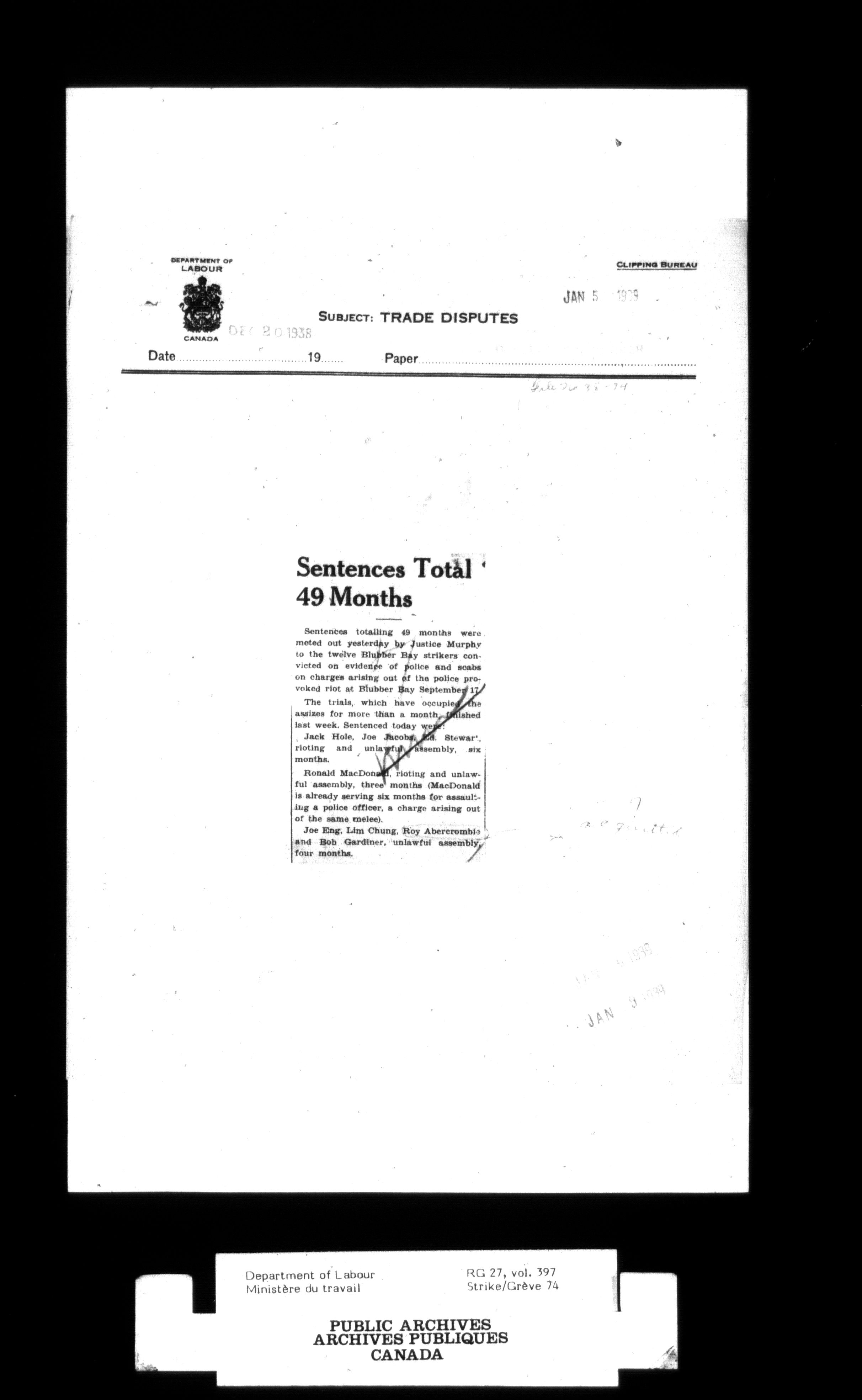 Department of Labour, Economics and Research Branch : Strikes and lockout files - 3005