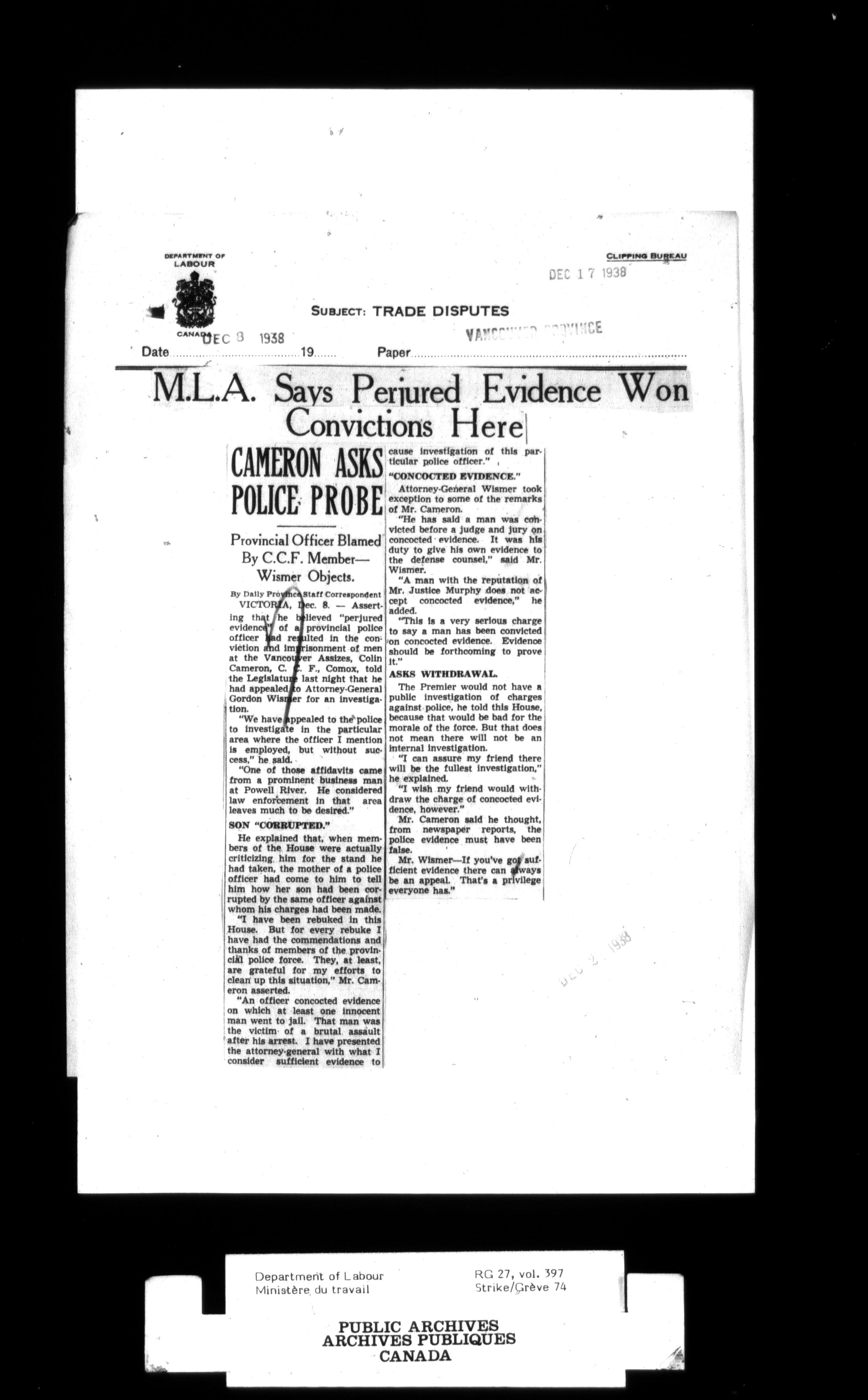 Department of Labour, Economics and Research Branch : Strikes and lockout files : T-3005