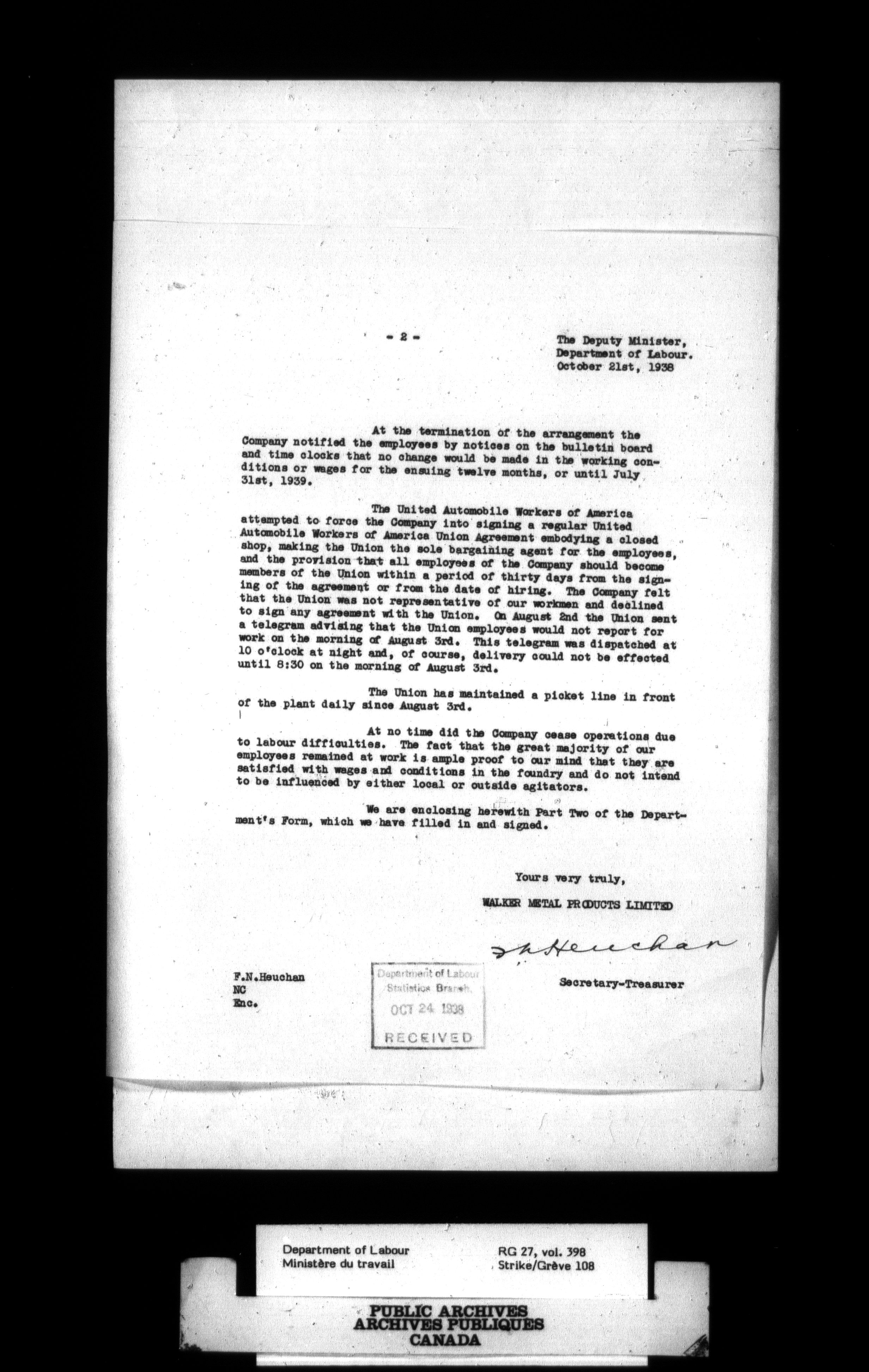 Department of Labour, Economics and Research Branch : Strikes and lockout files - 3006