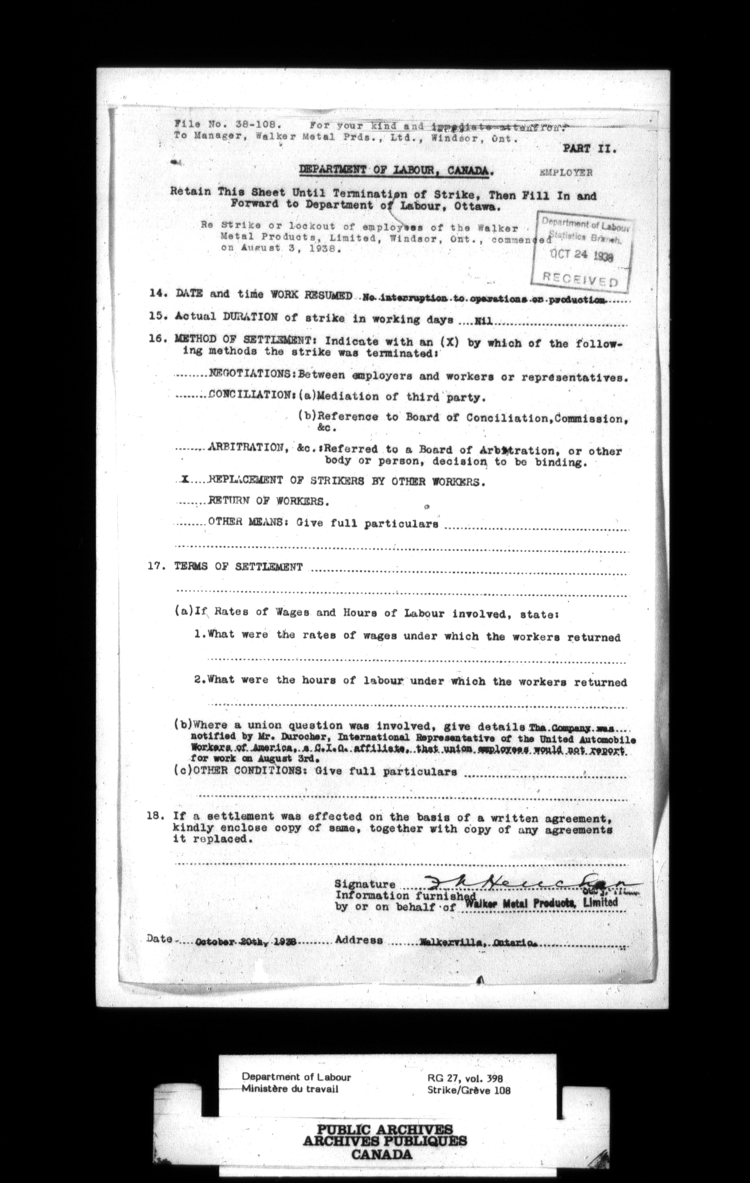 Department of Labour, Economics and Research Branch : Strikes and lockout files - 3006