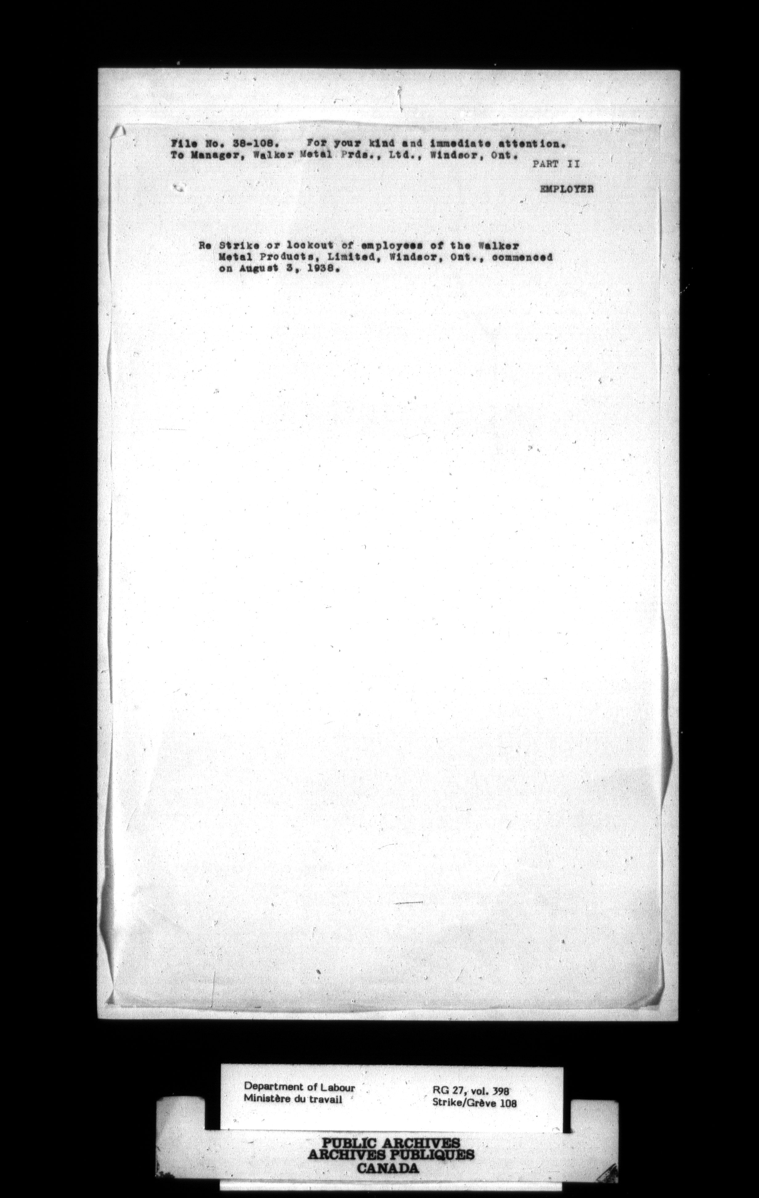 Department of Labour, Economics and Research Branch : Strikes and lockout files - 3006