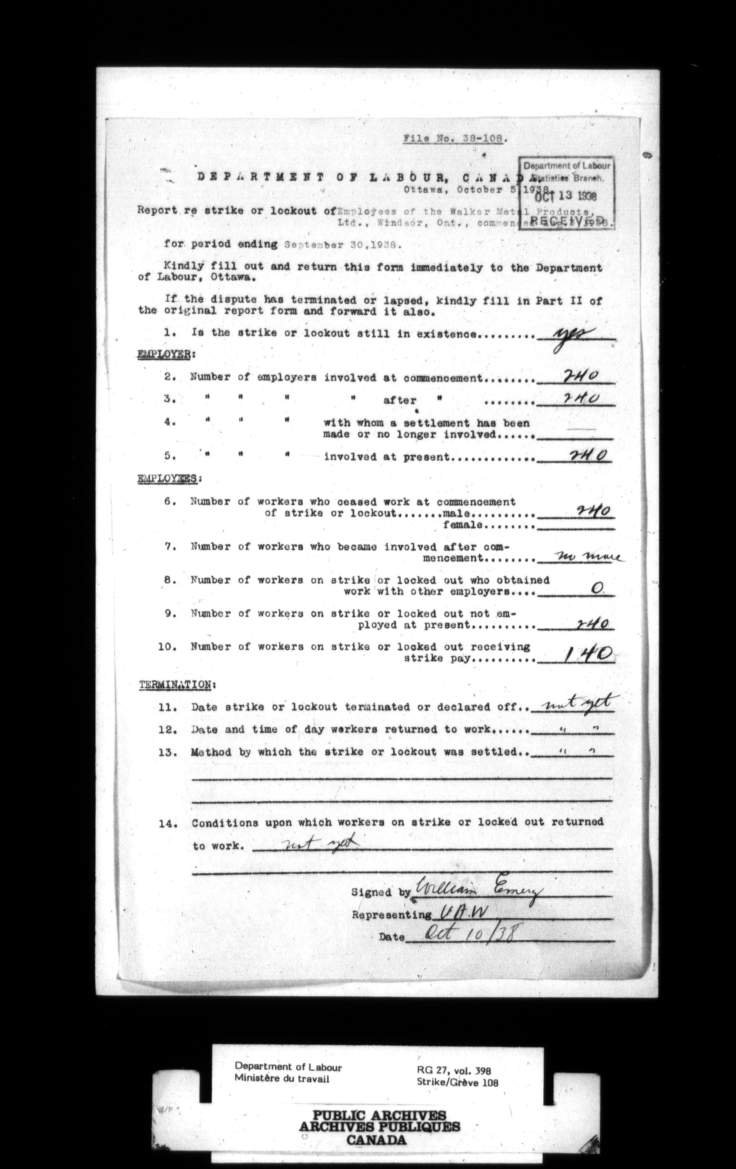 Department of Labour, Economics and Research Branch : Strikes and lockout files - 3006