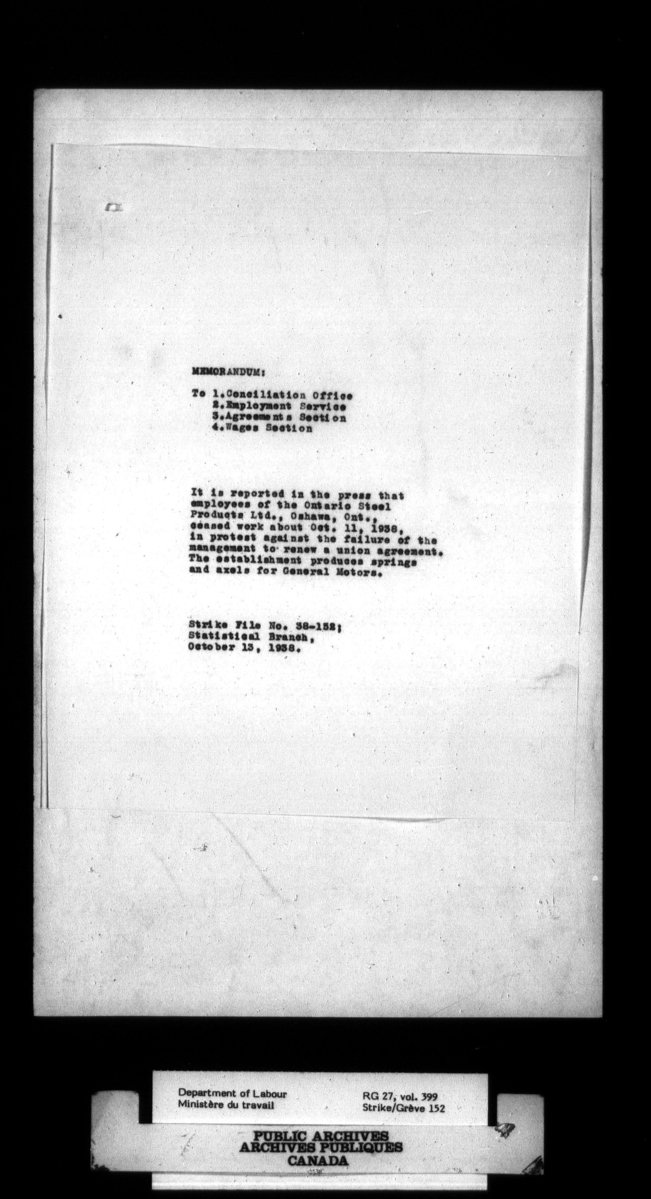 Department of Labour, Economics and Research Branch : Strikes and lockout files - 3007