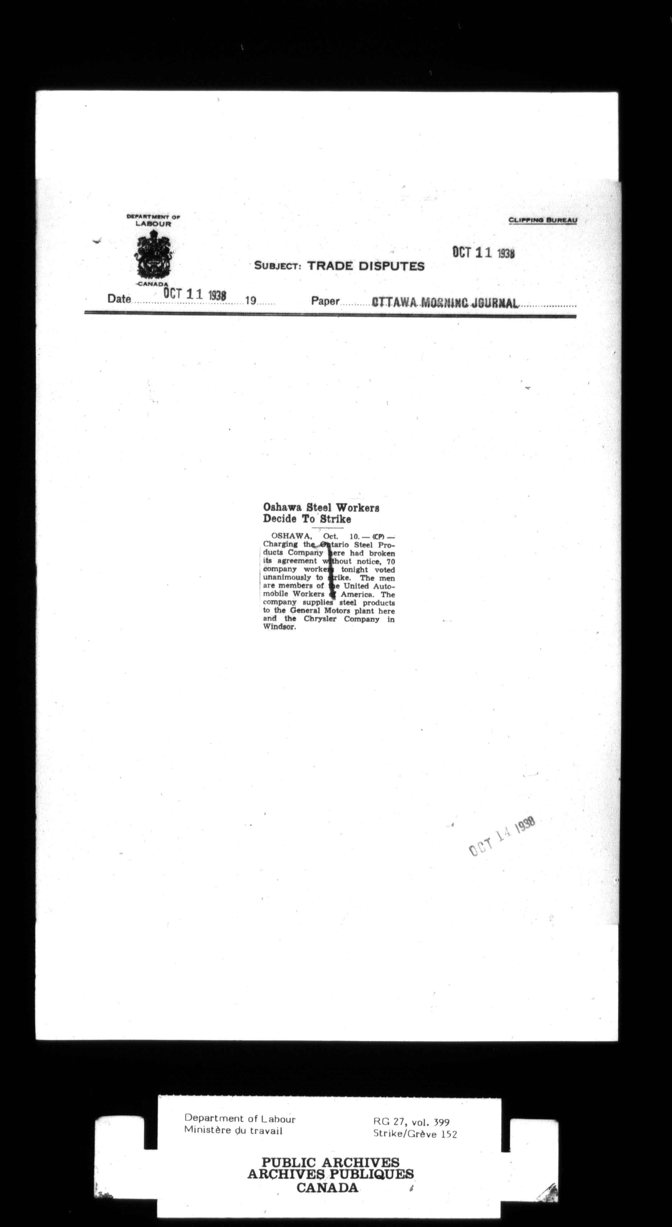 Department of Labour, Economics and Research Branch : Strikes and lockout files : T-3007