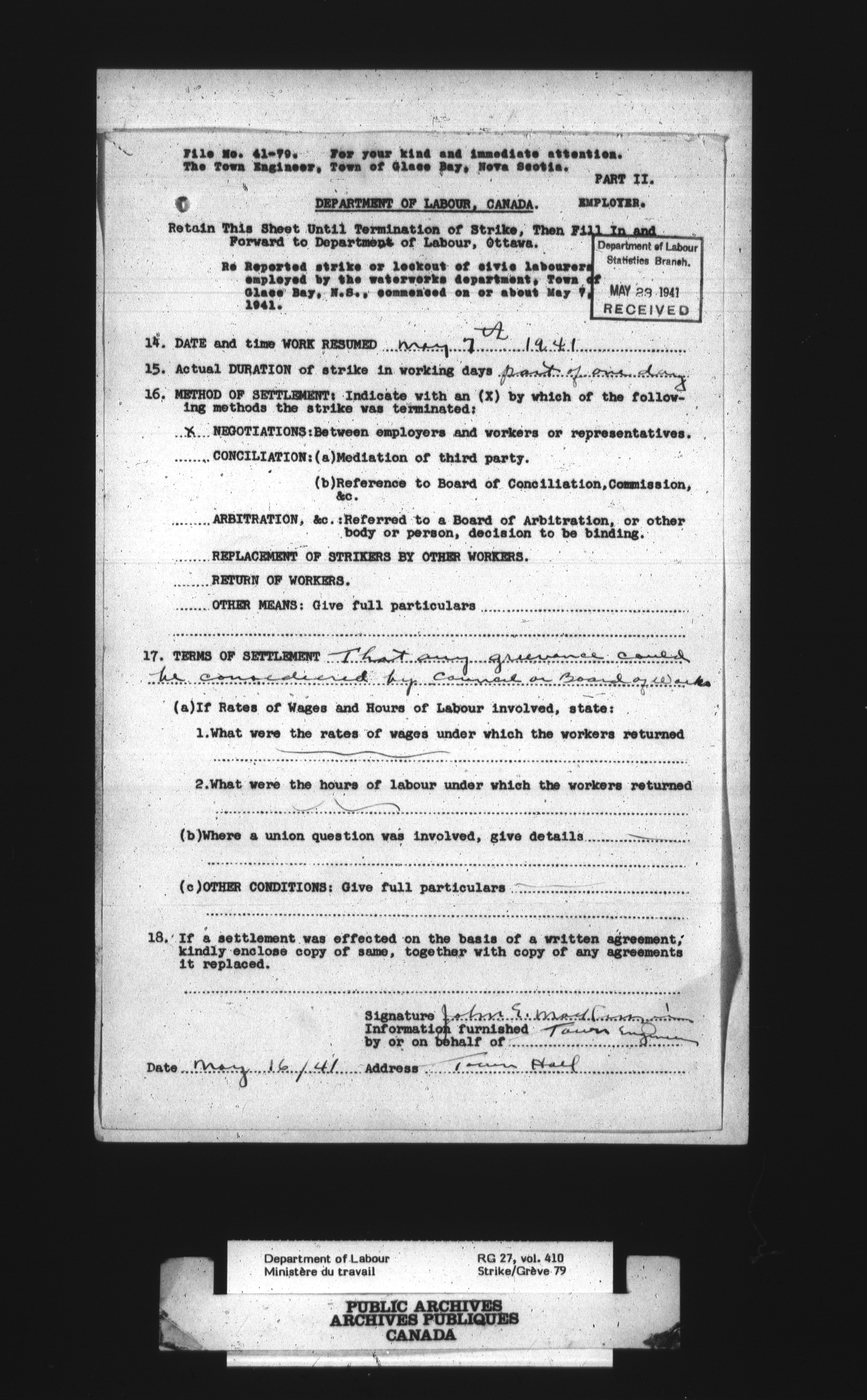 Department of Labour, Economics and Research Branch : Strikes and lockout files - 3018
