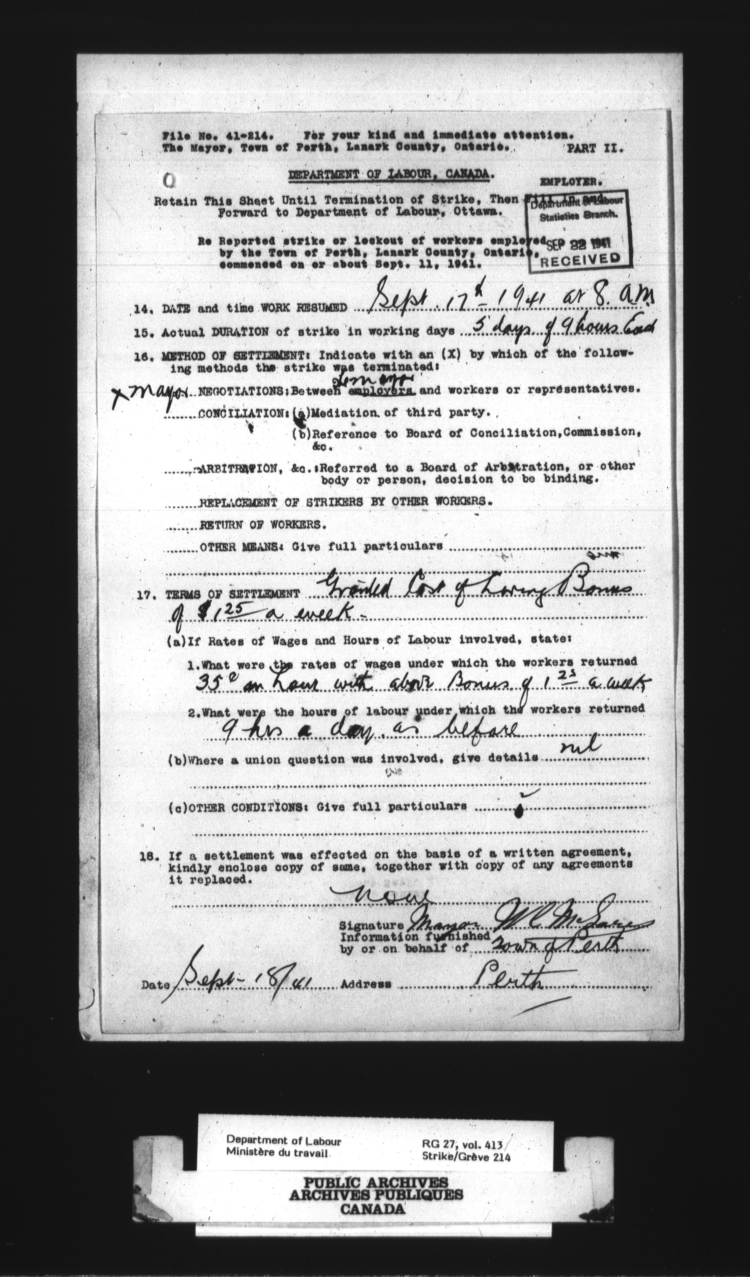 Department of Labour, Economics and Research Branch : Strikes and lockout files - 3019