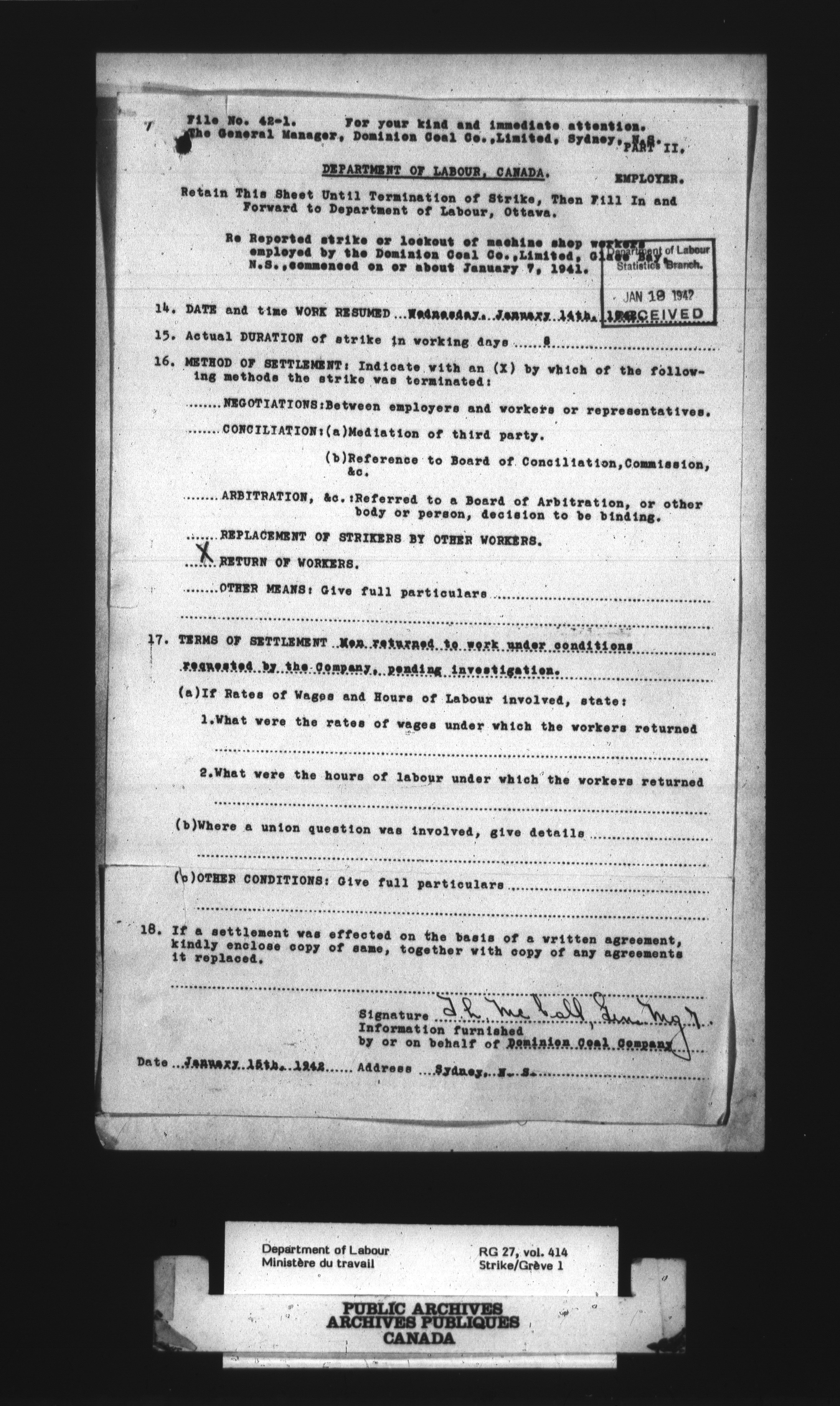 Department of Labour, Economics and Research Branch : Strikes and lockout files : T-3020