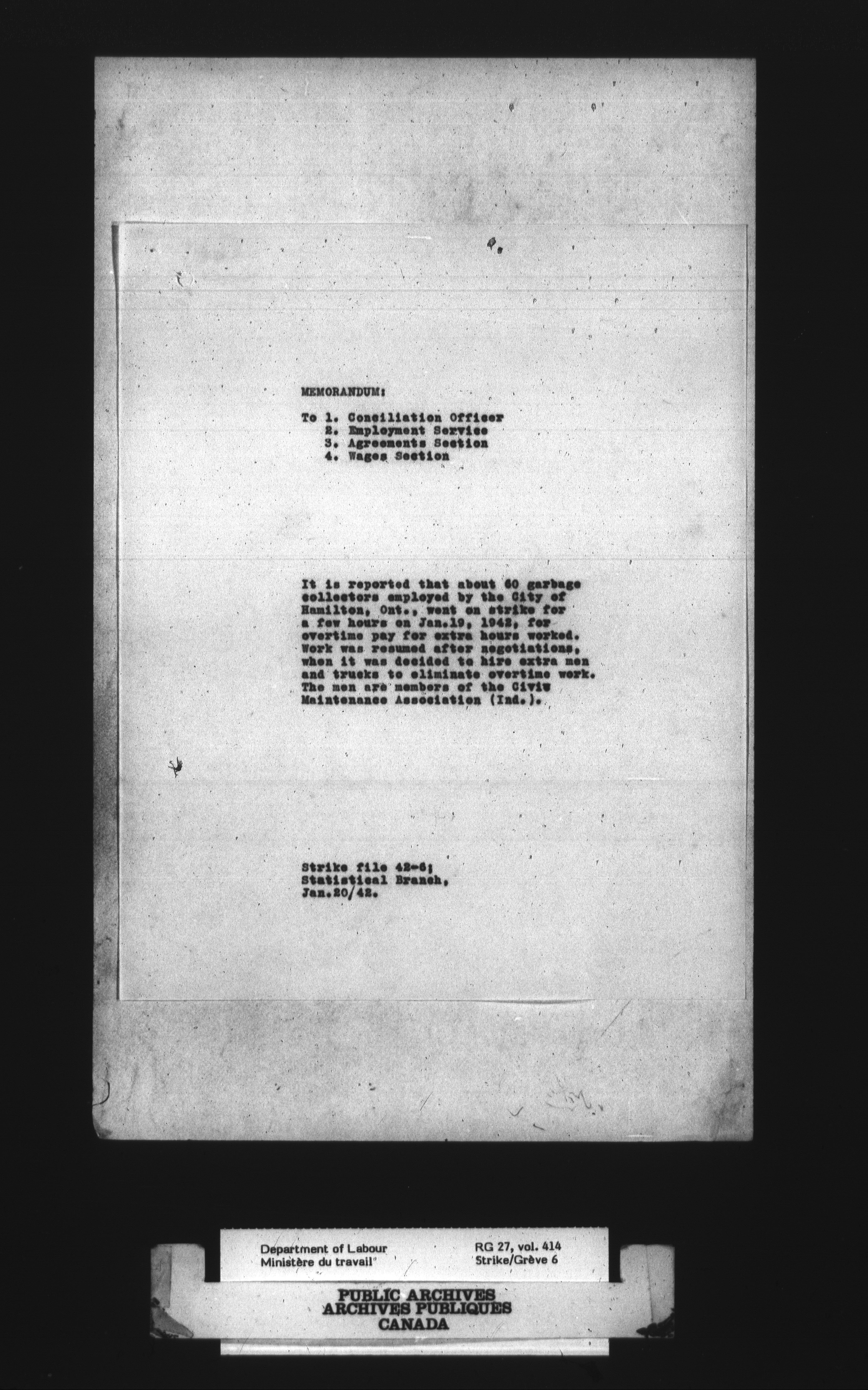 Department of Labour, Economics and Research Branch : Strikes and lockout files - 3021